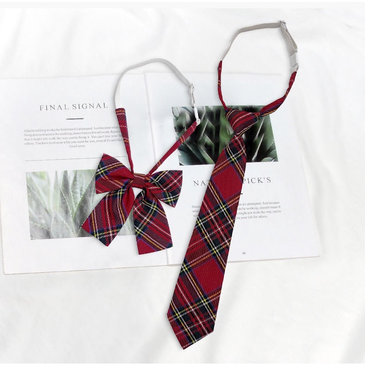 New white shirt and tie women free of Japanese Necktie college style shirt and tie JK school uniform Neckties red and yellow Plaid Bow Tie women