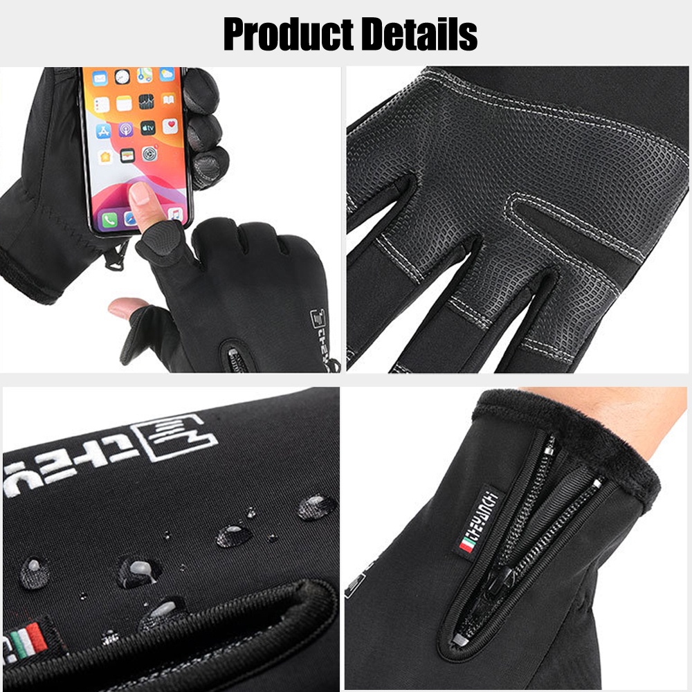 Newboler Two Finger Flip Fingerless Touch Screen Gloves For Motor Cycle Men Women Winter Warm Motorcycle Gloves Waterproof Windproof Riding Gloves Fishing Outdoor Sports Gloves