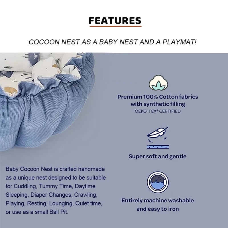 Newborn Baby Cocoon Nest Bed Baby Lounger Bed Baby Sleeping Nest Baby Playmat - Pillows NOT INCLUDED