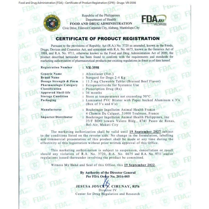 NexGard (Afoxolaner) for Dogs - 1pc Chewable Tablet