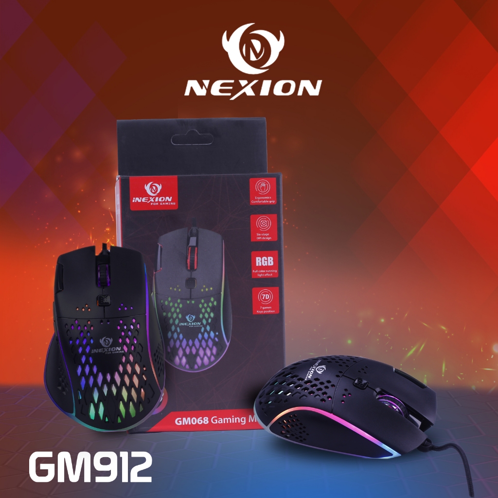 Nexion GM068 New Design RGB 7D Gaming Mouse Six Stage Dpi Polling Rate 1000Hz Ergonomic Design Wired