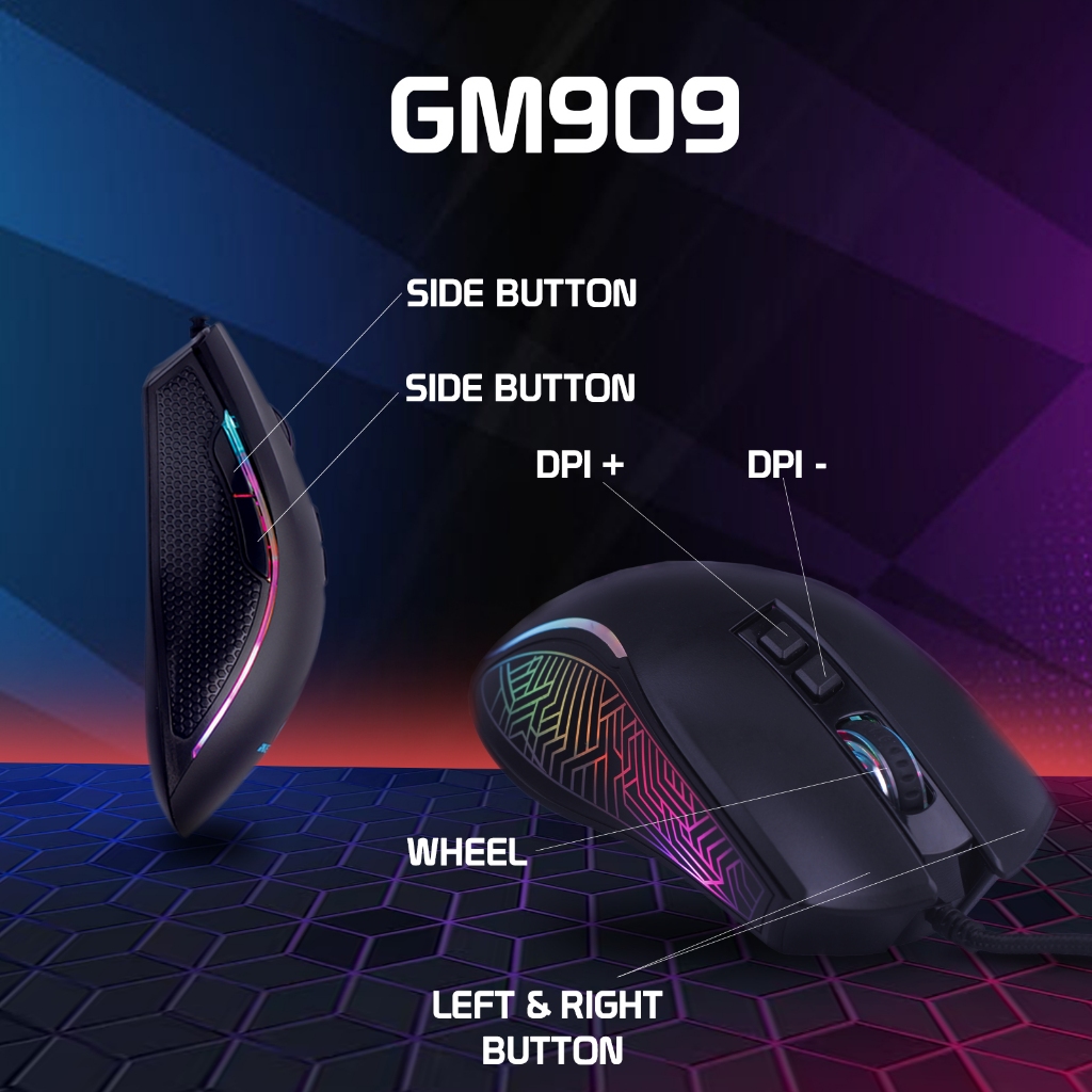 Nexion GM909 New Design RGB 7D Gaming Mouse Six Stage Dpi Ergonomic Design Wired For Pc laptop