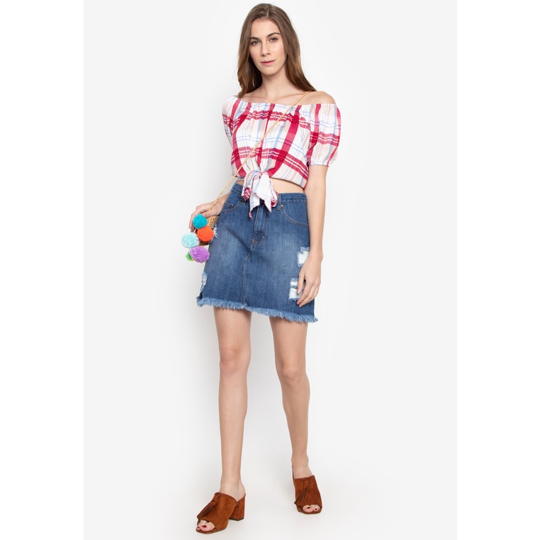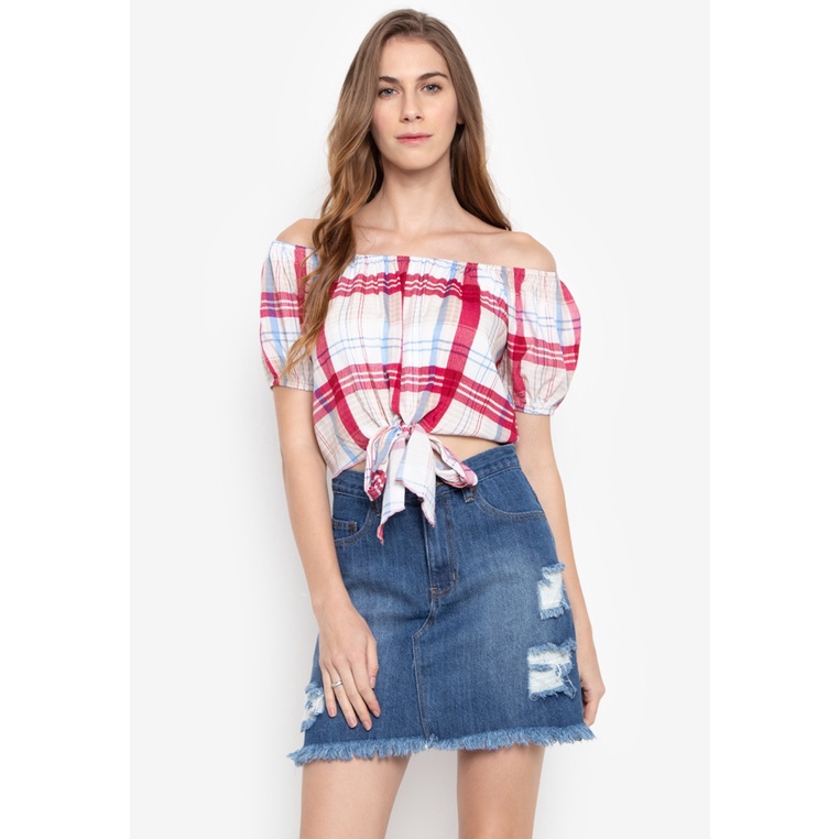 Next Jeans Off-Shoulders Crop Top (Multicolor)