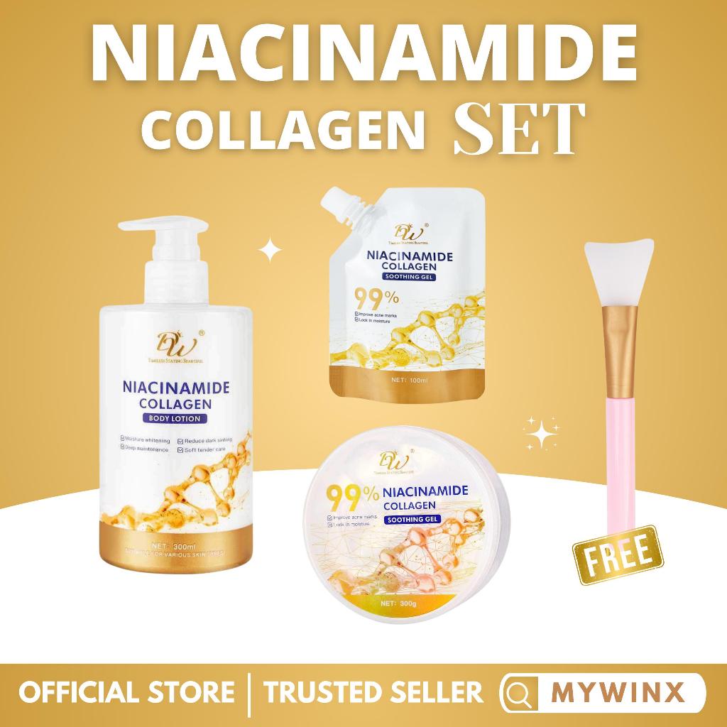 Niacinamide Collagen Set with Lotion, Soothing gel, Sachet Gel and Free Silicone Brush