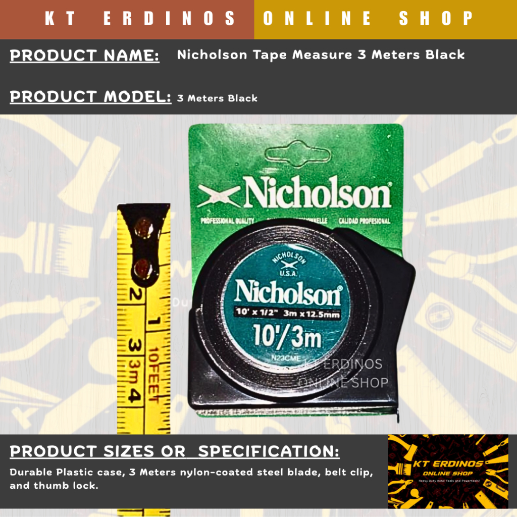 Nicholson Tape Measure 3 Meters Black