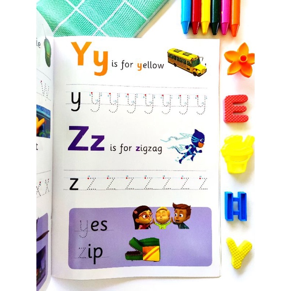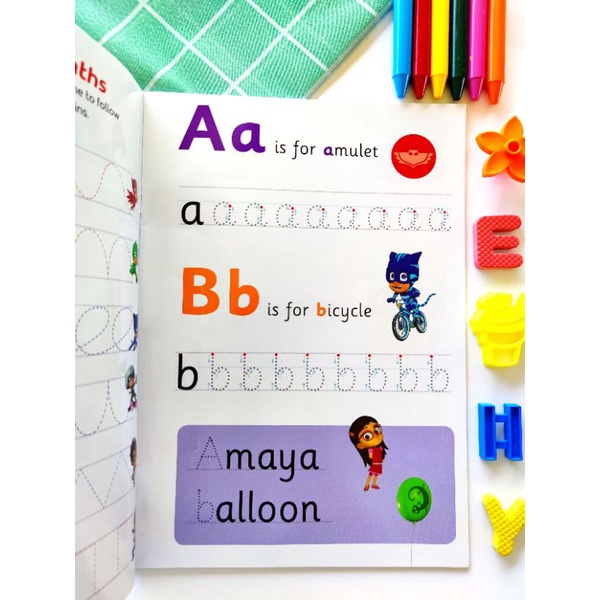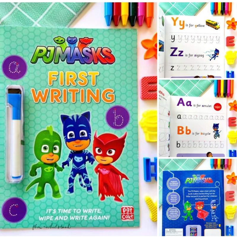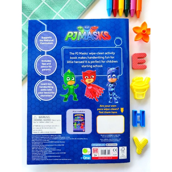 Nickelodeon PJ Mask wipe clean activity book. Starting to write, first writing abc letters , phonics / alphabet for kids