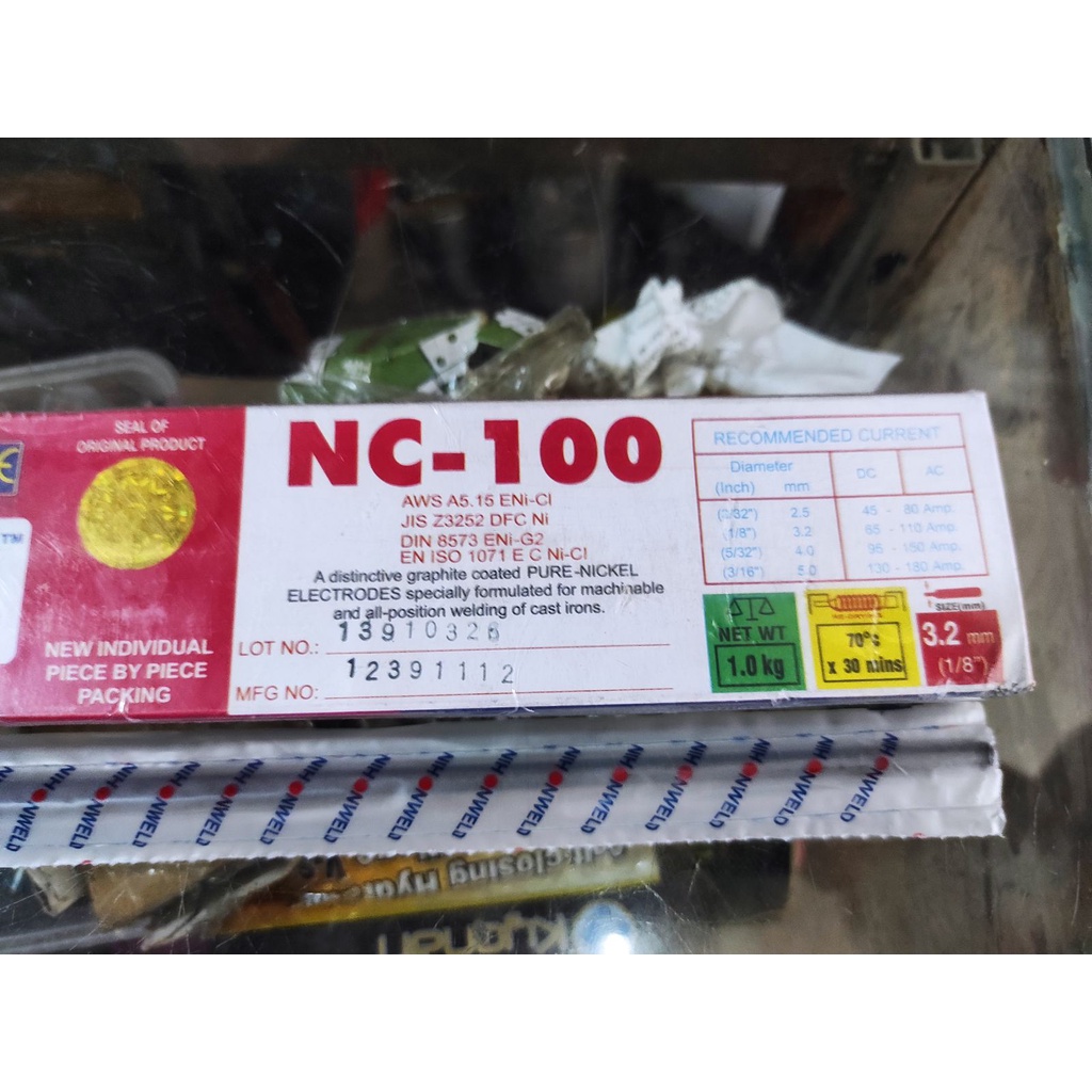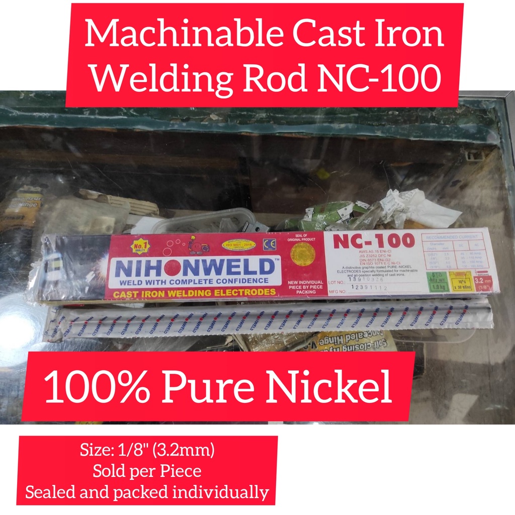 Nihon Cast Iron Welding Rod NC-100 1/8" 3.2mm sold per piece Graphite Coated 100% Nickel Machinable
