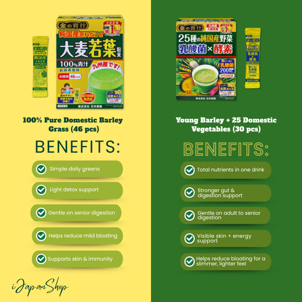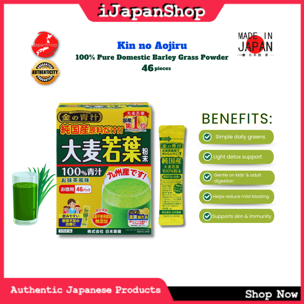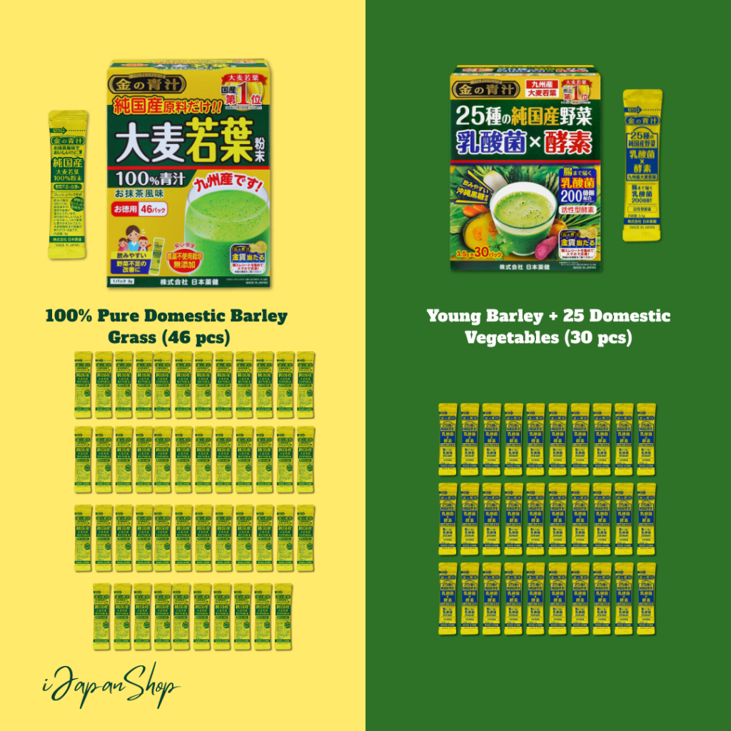 Nihon Yakken Japan Young Barley Drink | Aojiru Premium Veggie Blend 46/30 Sachets No Caffeine
