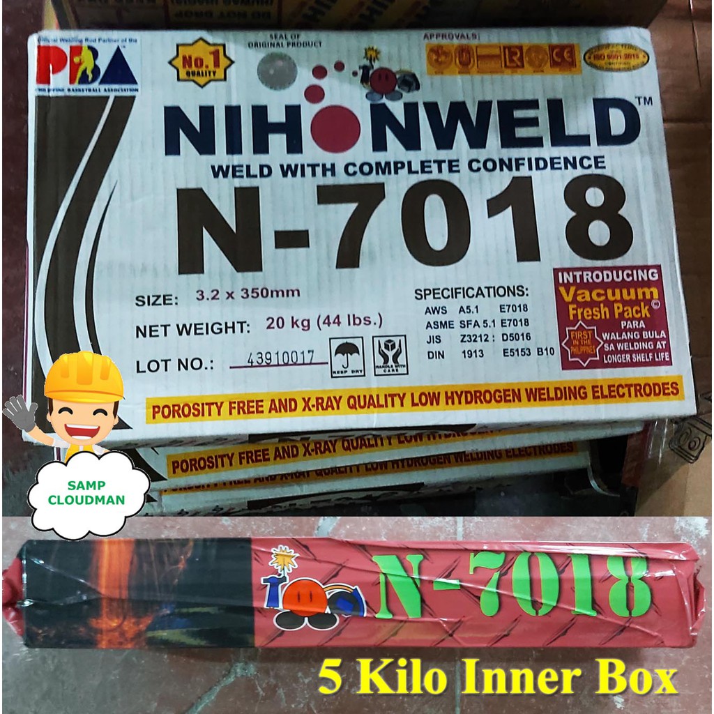 Nihonweld Welding Rod N-7018 1/8 5/32 3.2mm 4mm 5 Kg. Kilo Pack Inner Box Nihon Weld 7018 Original