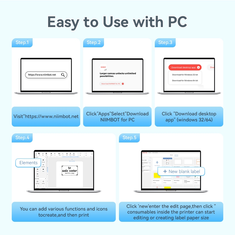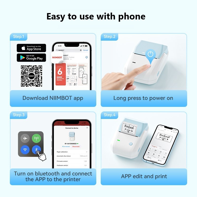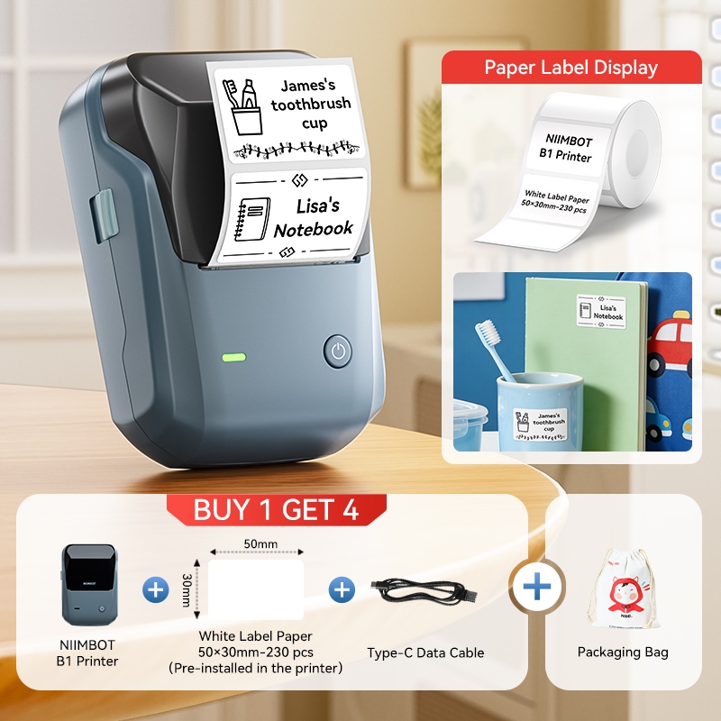 Niimbot B1 Portable Bluetooth Label Printer | Inkless Thermal Sticker Maker for School Name Tag Kitchen Home Organization