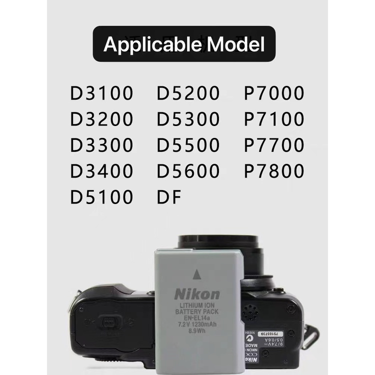 Nikon EN-EL14a battery for nikon D3100 D3200 D3300 D3400 D5100 D5200 D5500 D5600 D5300 P7000 P7100