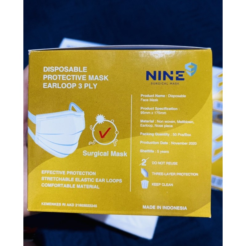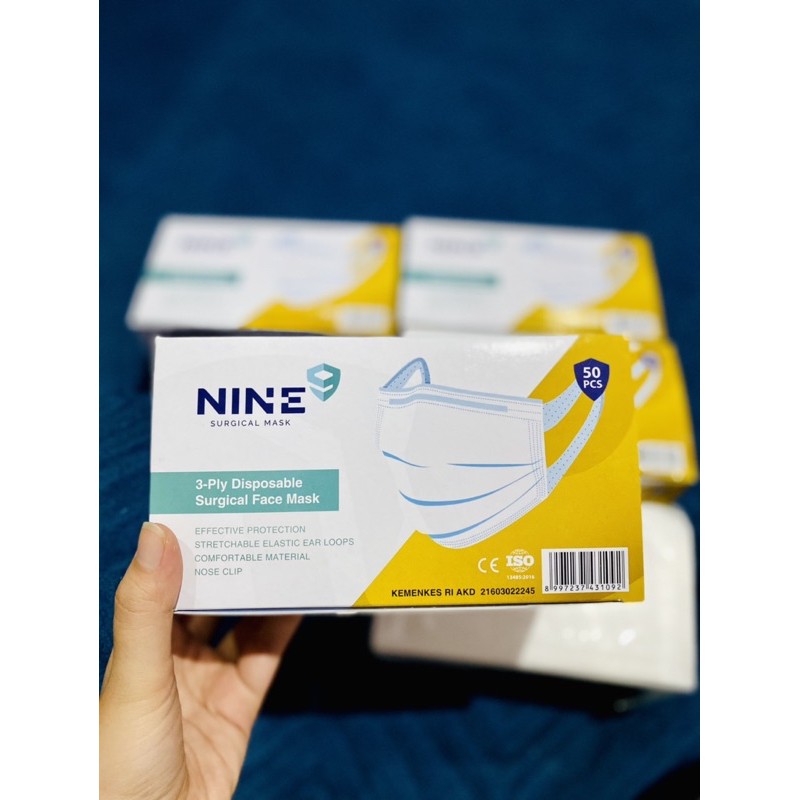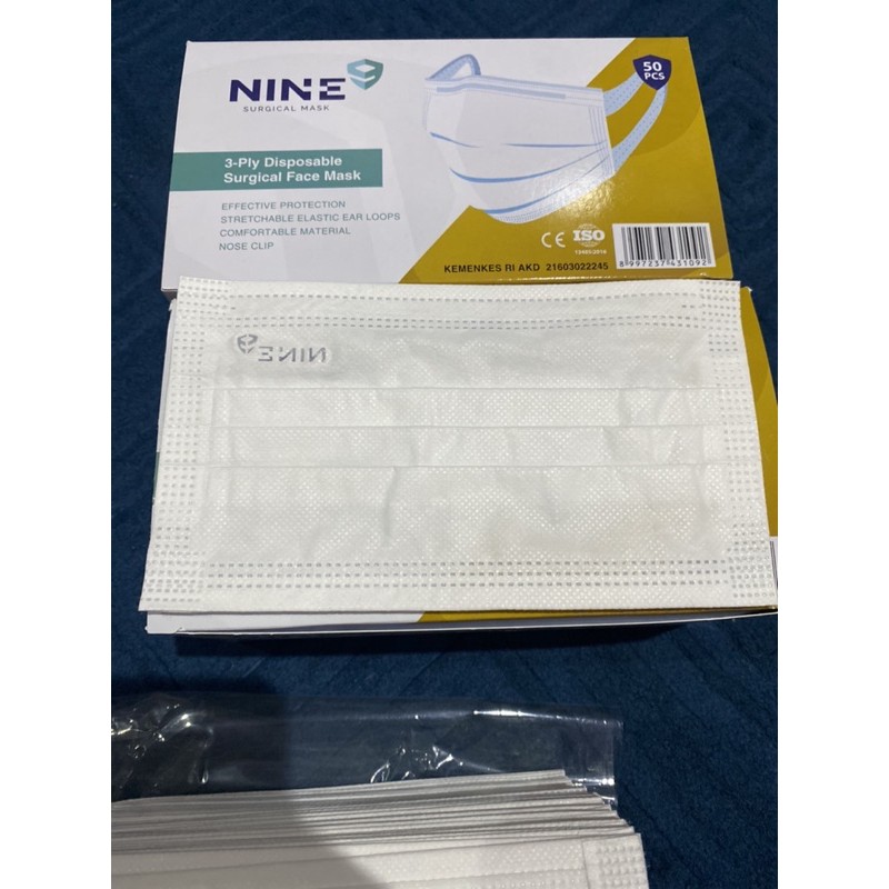 Nine Surgical Face Mask 3-ply 50 pcs (Wide earloop strap Model)
