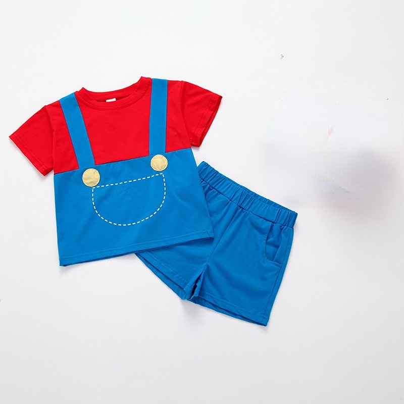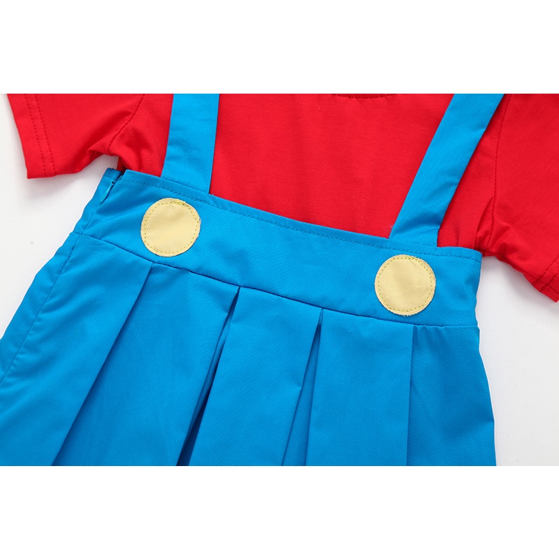 Nintendo Games Super Mario Shirt Short Costume Terno for Kids Boy Girl Dress Super Mario Cap Family Brother and Sister Matching Outfit Birthday Theme Christmas Halloween Cosplay