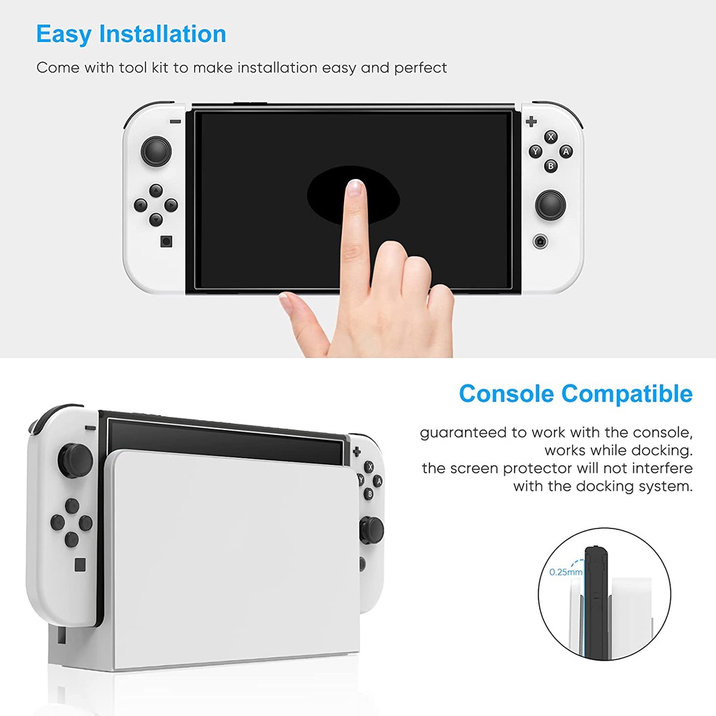 Nintendo Switch Oled Tempered Glass Screen Protector Compatible with Switch OLED 2021 Model , Ultra-Thin HD Clear Anti-Scratch Screen Cover Film