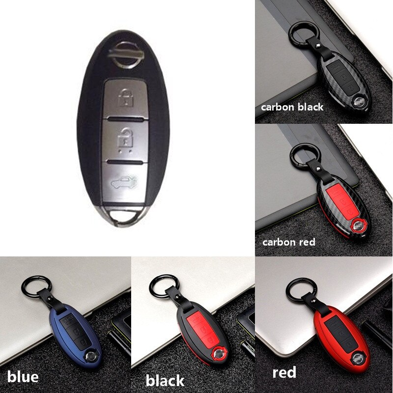 Nissan Navara Keyless Remote Carbon Fibre Hard Case + Silicone Car Key Cover Case with Chain key fob holder for nissan terra almera sentra frontier accessories ready stock