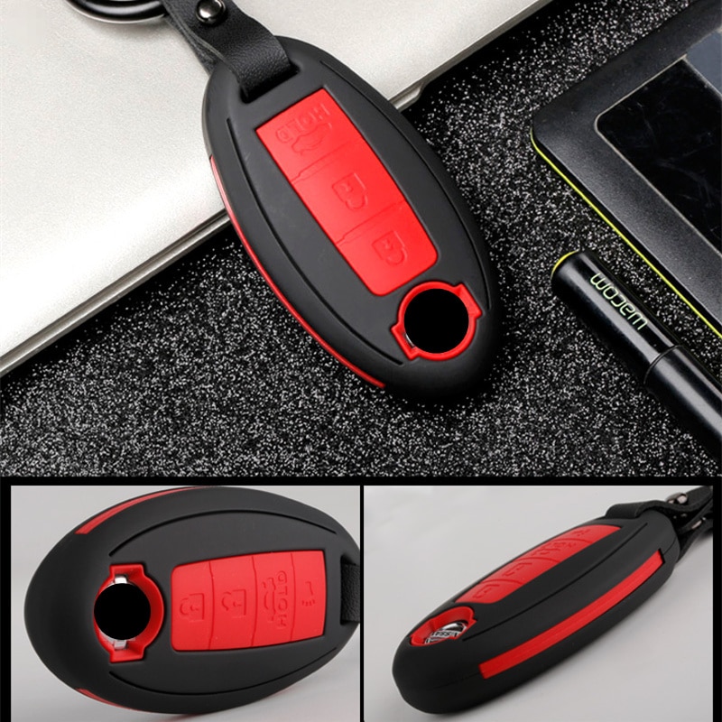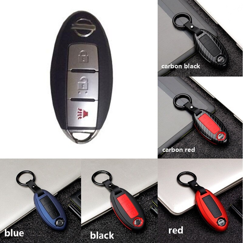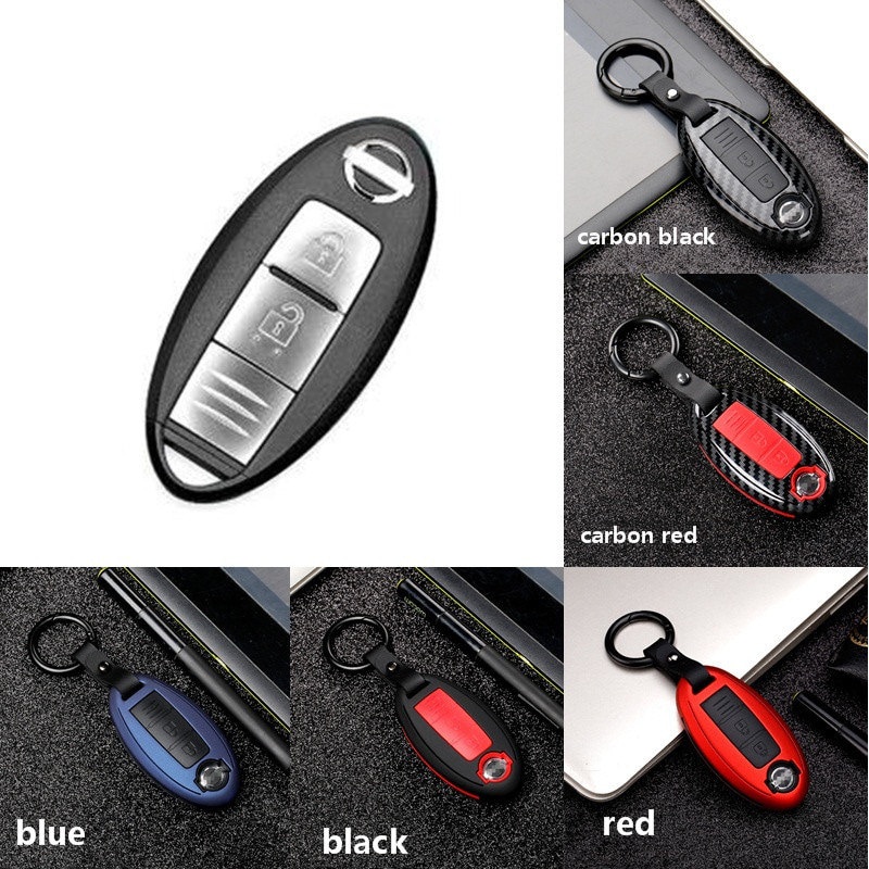 Nissan Navara Keyless Remote Carbon Fibrer Hard Case + Silicone Car Key Cover Case with Chain key fob holder keyring for nissan terra almera sentra frontier accessories