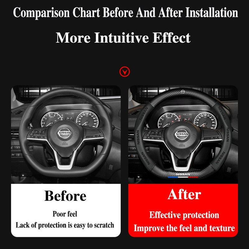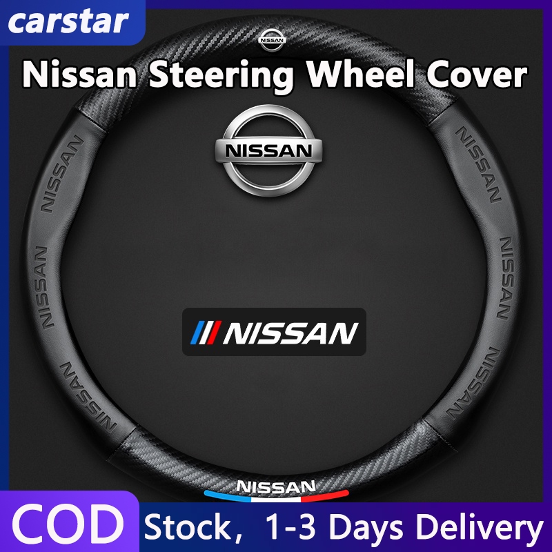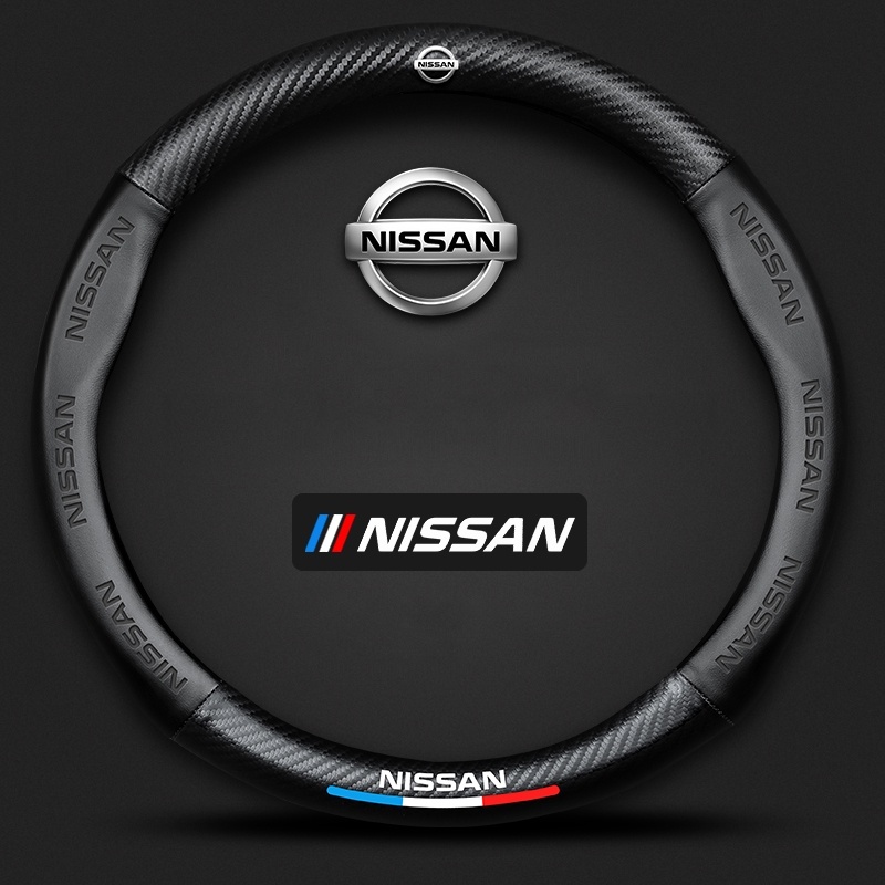 Nissan Steering Wheel Cover 3D Embossed Leather Carbon Fiber Car Steering Wheel Cover Navara Terra Urvan Almera