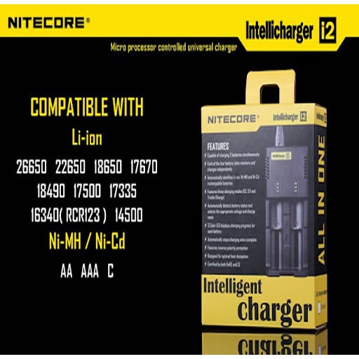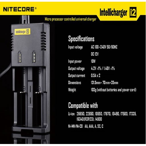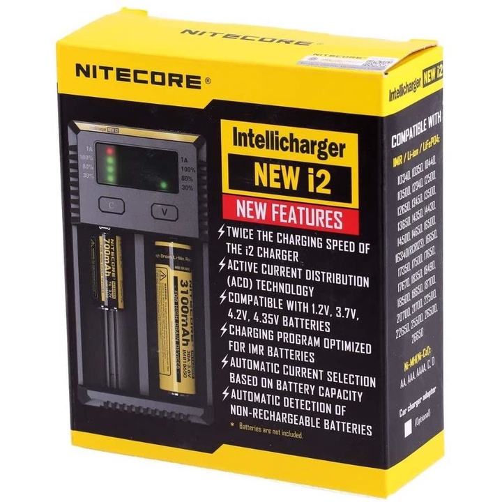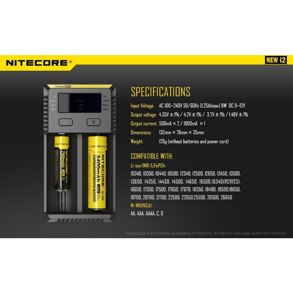 NiteCore INTELLIGENT i2 NEW - BATTERY CHARGER for two Batteries. Compatibility (AA, AAA and others)