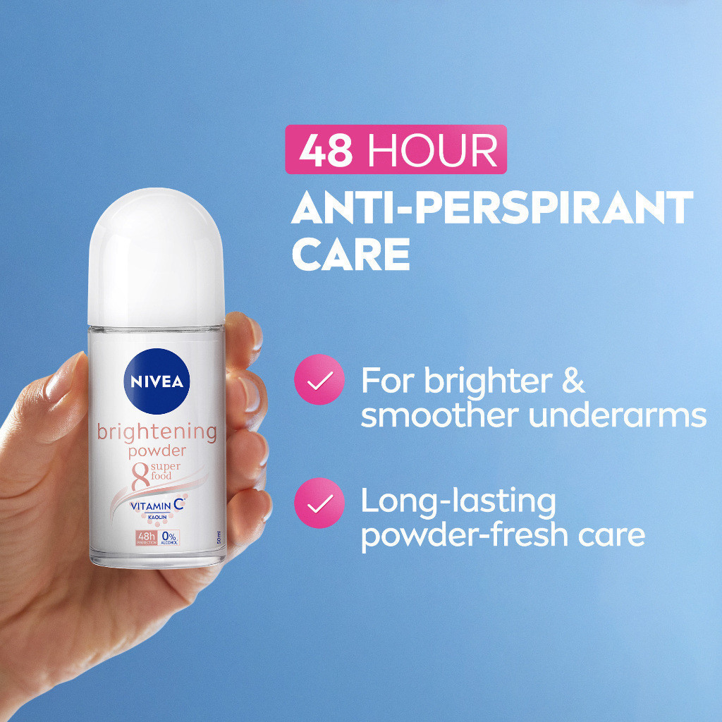 NIVEA Deodorant Brightening Powder Antiperspirant Roll On for women, with Vitamin C, 50ml