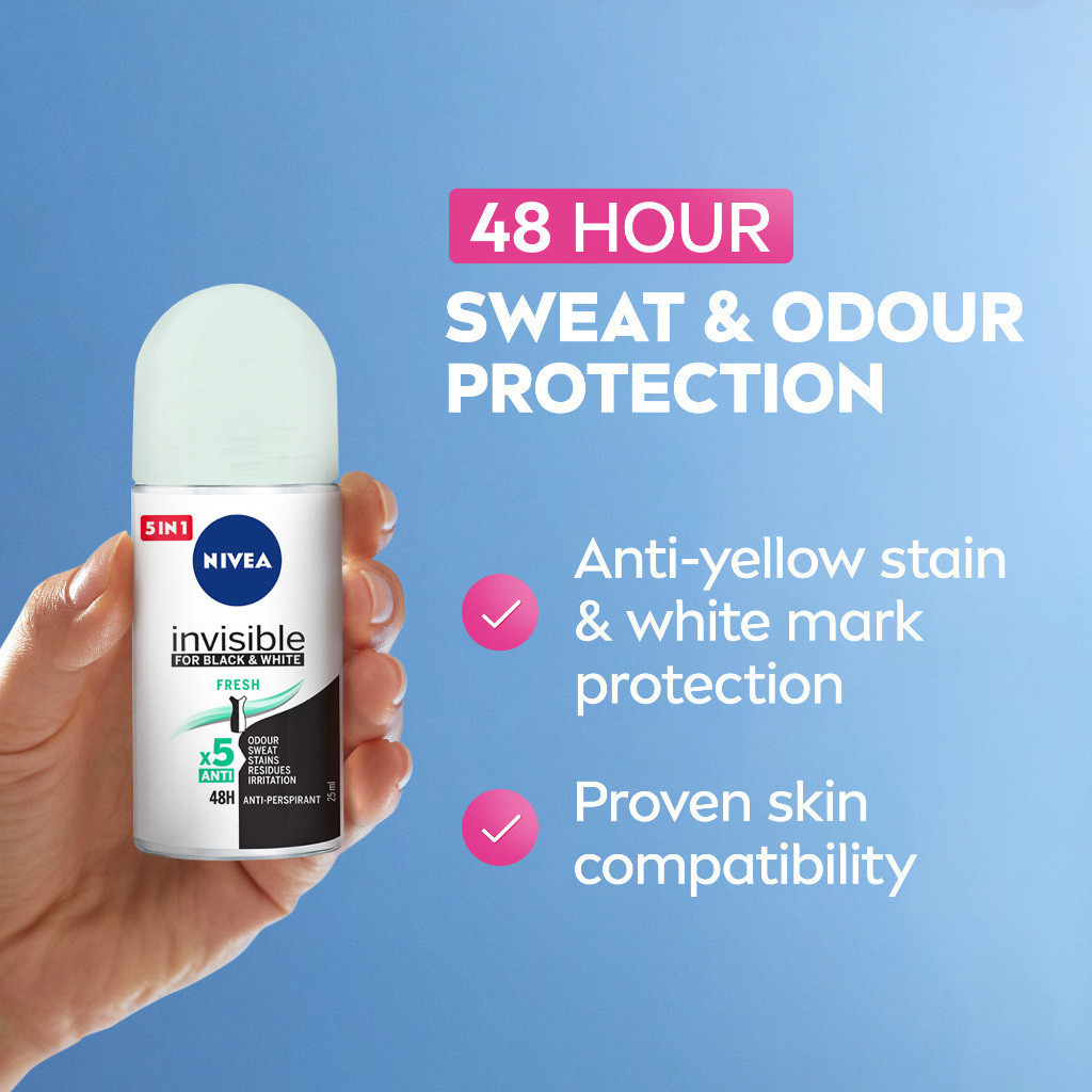 NIVEA Deodorant Black & White Fresh Roll On Deodorant, 50ml