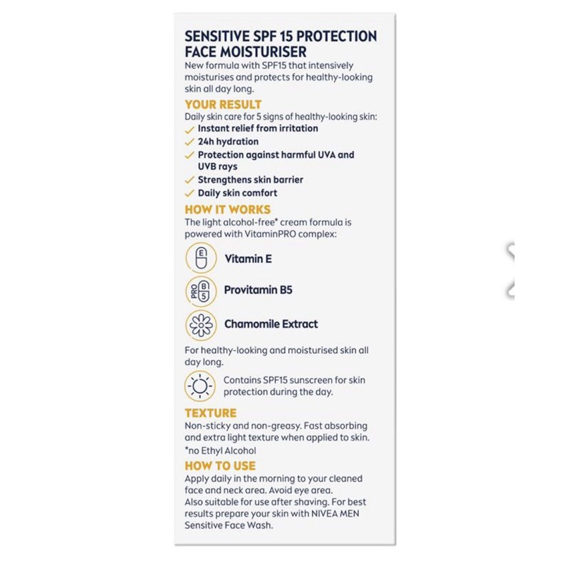 Nivea Men sensitive face cream SPF15 75ml