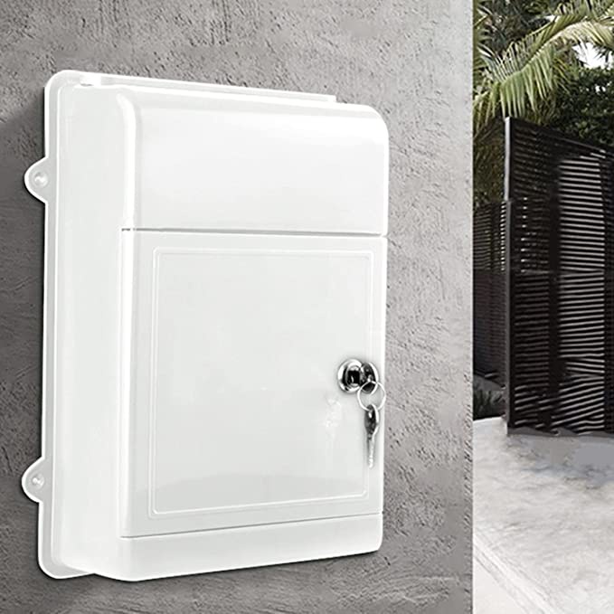 No Back Modern Wall Mount Locking Mailboxes, Indoor Outdoor Universal Plastic Mailbox, Large Capacity Home/Office Business Drop Box with Secure Lock Keys