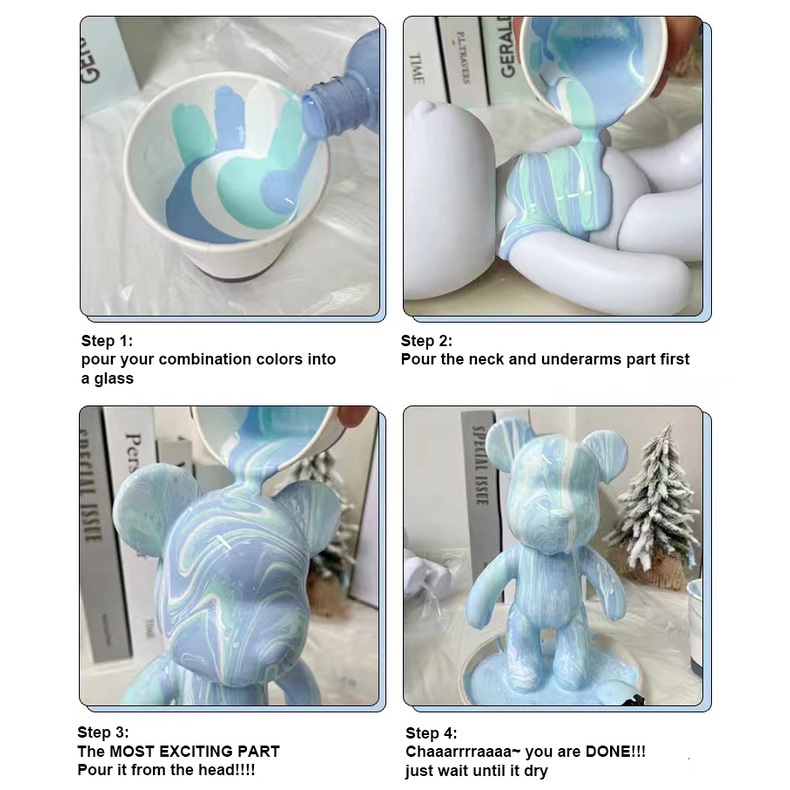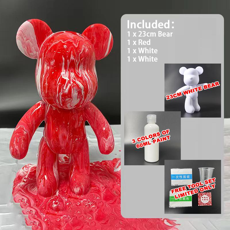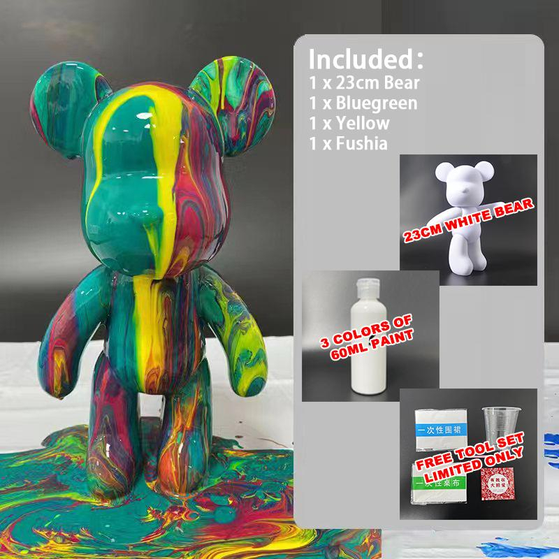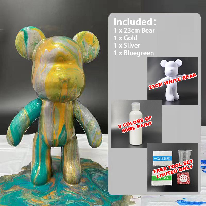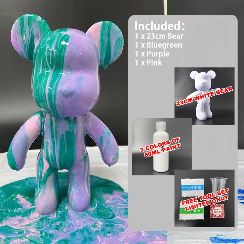 No Box Onhand SET 23cm Bear w/ Paint DIY Violent Bearbrick Color Fluid Coloring Bear DIY Unique Bear