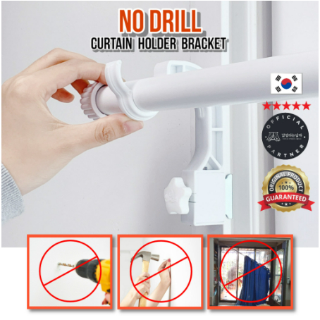 No Drill No Hole Curtain Rod Bracket 2Pcs Adjustable Curtain Rod Holder Hook / Easy installation without drilling holes