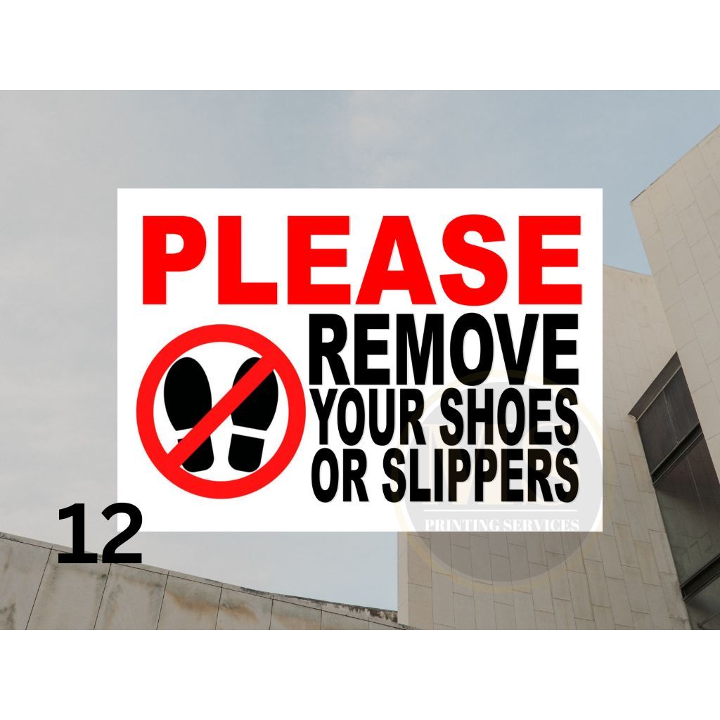 No Shoes Slippers Signage (Laminated Signage and Waterproof Vinyl Sticker A4 Size)