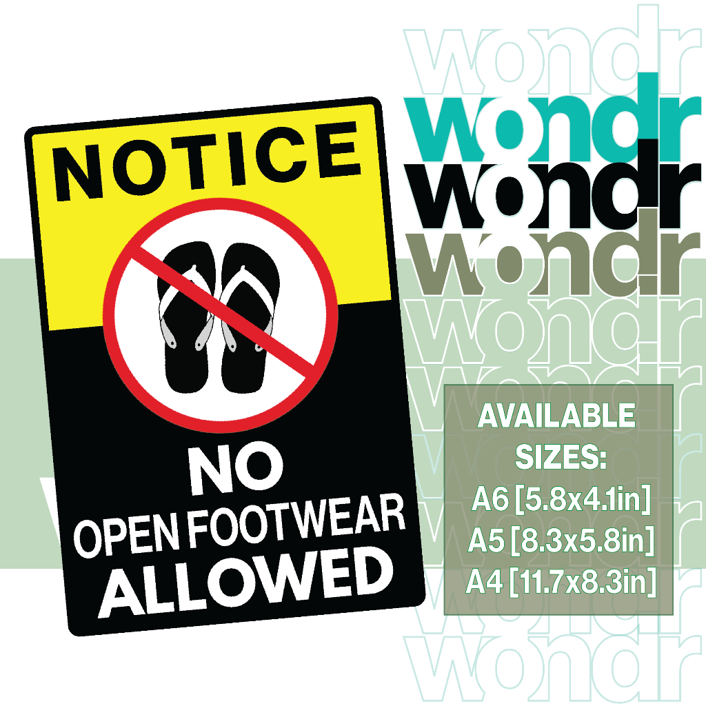 No Slippers, Open Footwear Allowed Inside. Please Wear Proper Shoes Signs, Signage