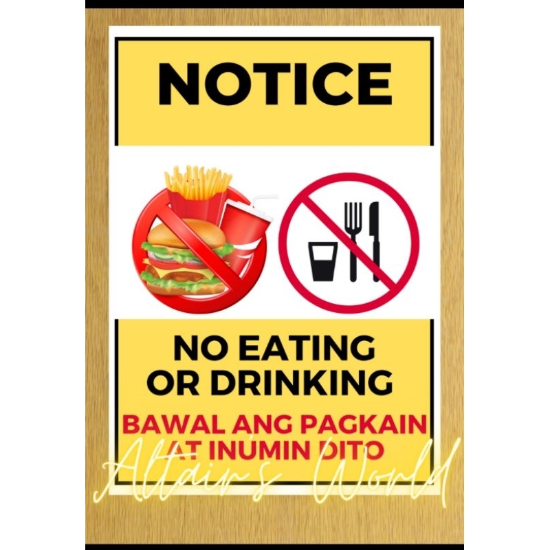 No eating and drinking sign / No eating Sticker / No food and drinks allowed sticker Laminated PVC