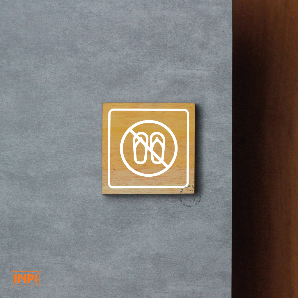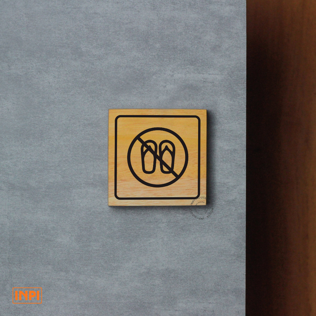 INPI HOUSE Signage No Slipper - Sign Board for Opening Footwear - Wood
