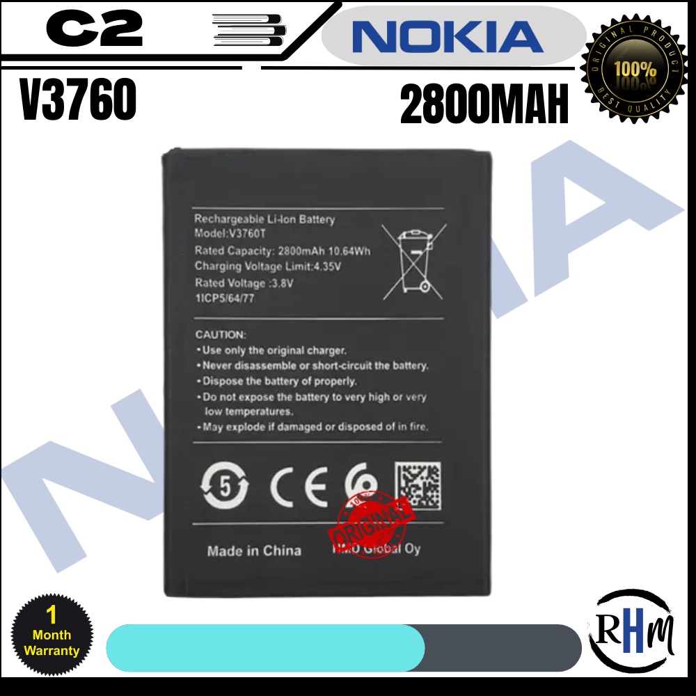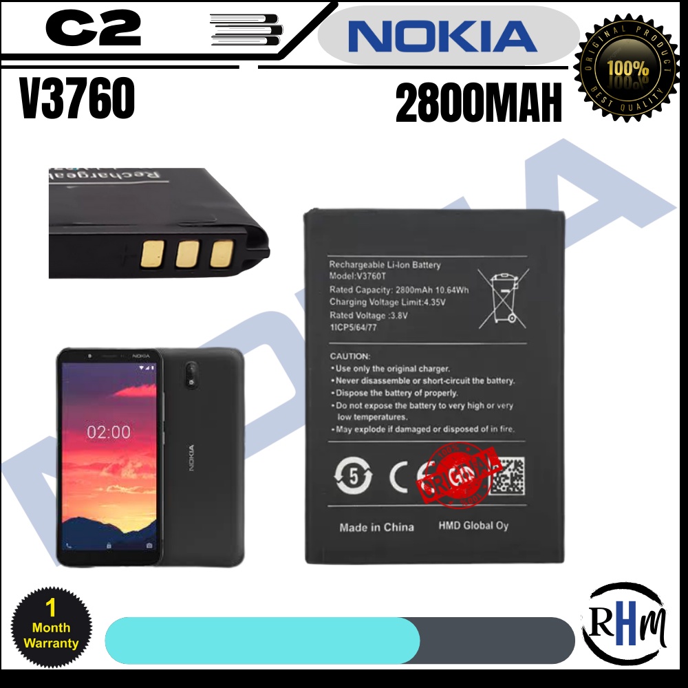 Nokia C2 Battery, Model: TA-1204 V3760T Original Quality Li-ion Battery | SHOPEE Phillippines