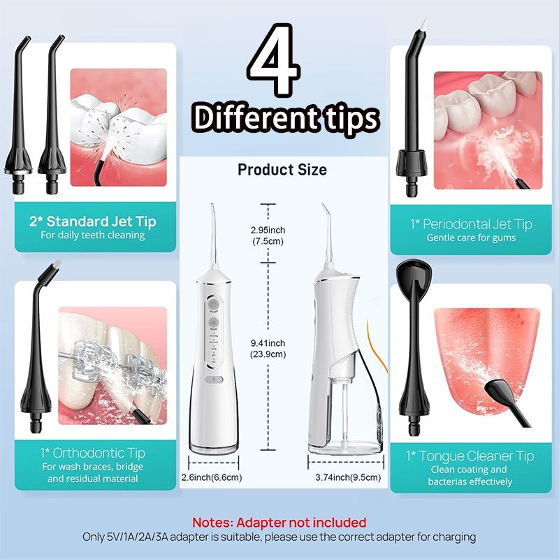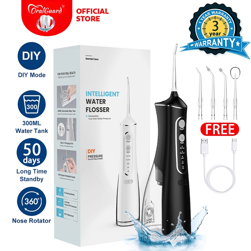 OralGuard Smart Electric Water Flosser Oral care 4 Heads 300ML Portable Dental Floss Teeth whitening