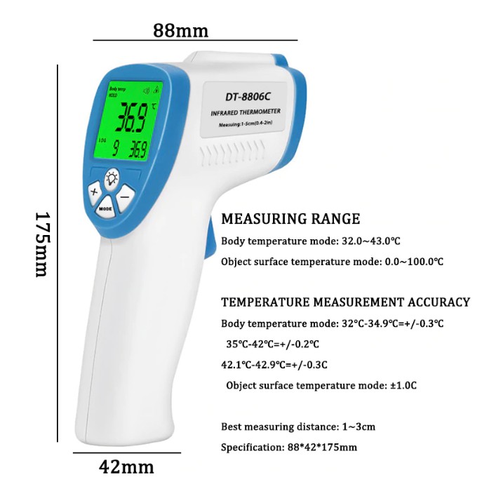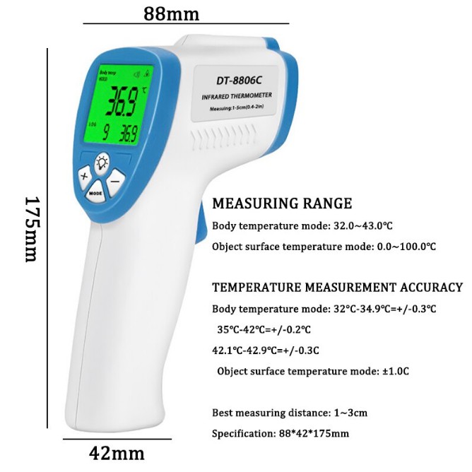 Non-Contact Infrared Thermometer Forehead Body Temperature with Fever Alarm for Adult and Baby