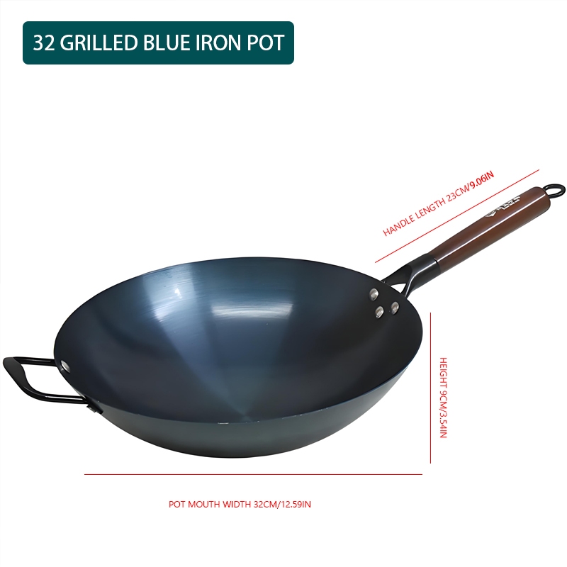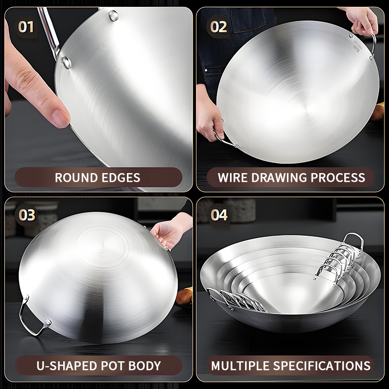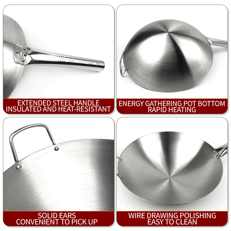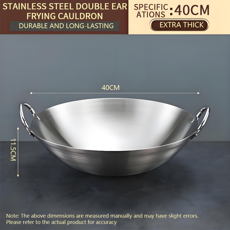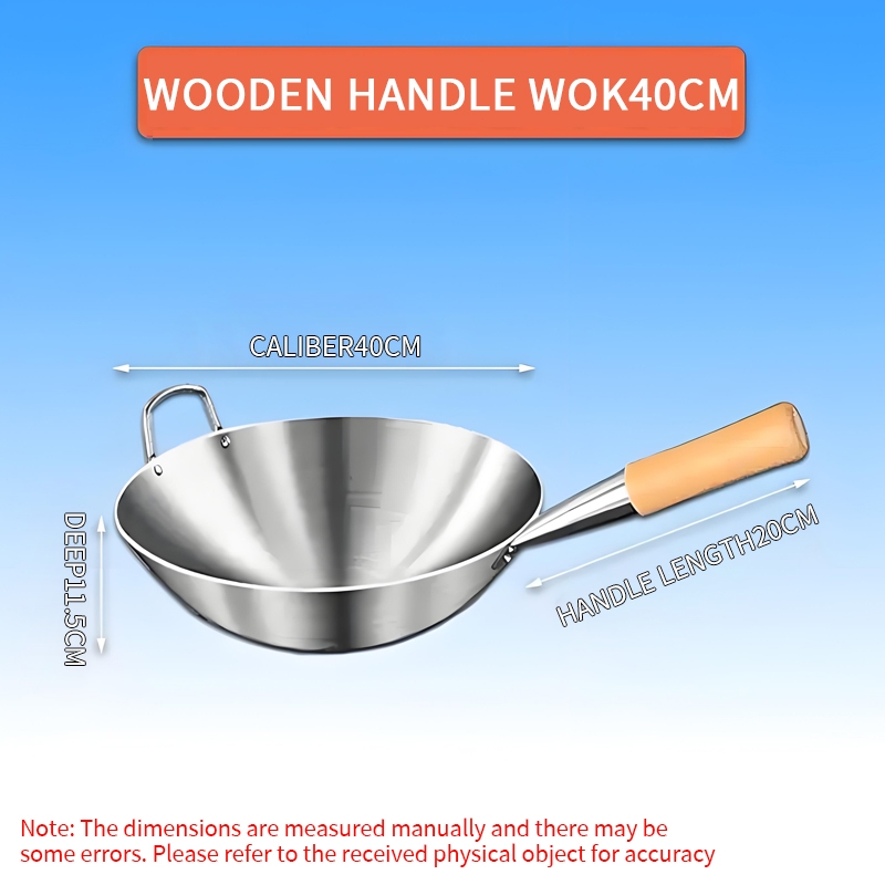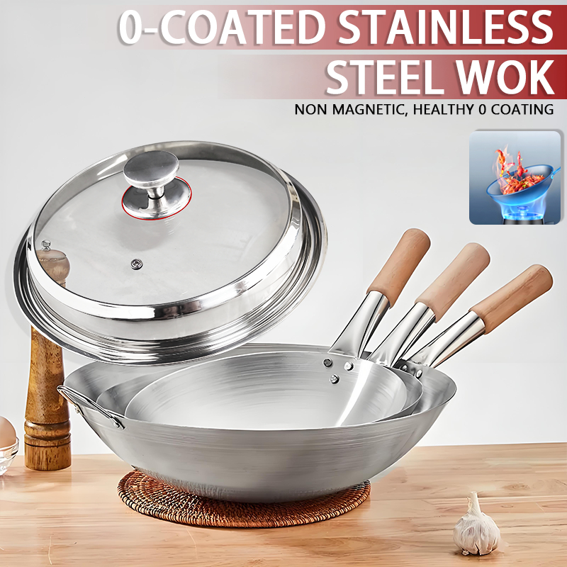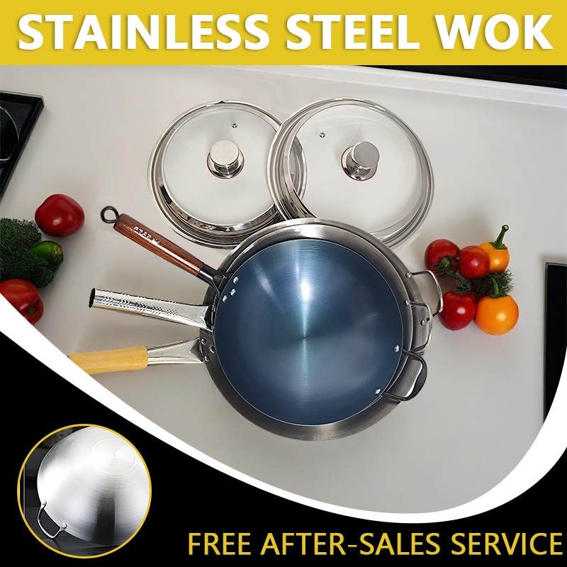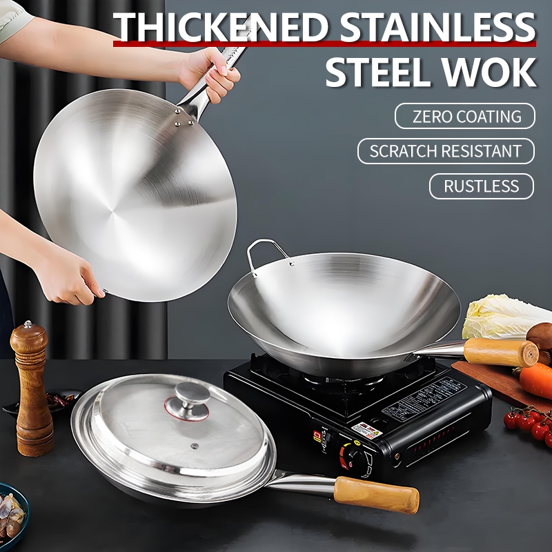 GITSQZ 30cm-50cm stainless steel wok with lid handle Non-Stick Pan Frying Thick Double Ear Iron Pot