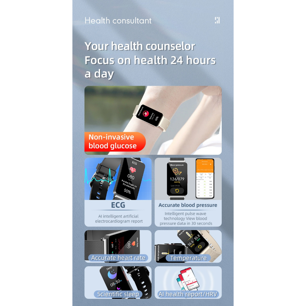 Non-Invasive Blood Glucose Smart Band ECG Monitoring Heart Rate Blood Pressure Wristbands IP67 Waterproof Fitness Bracelet