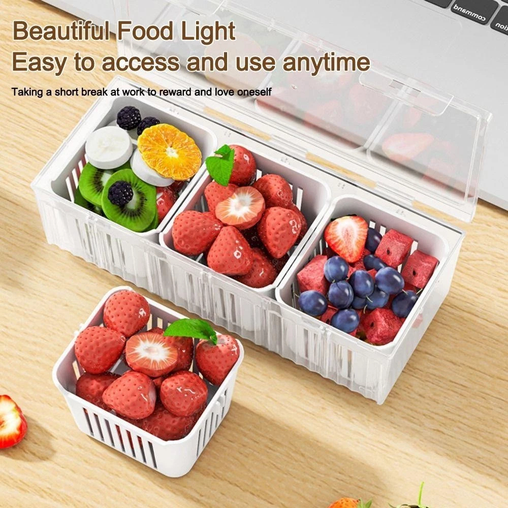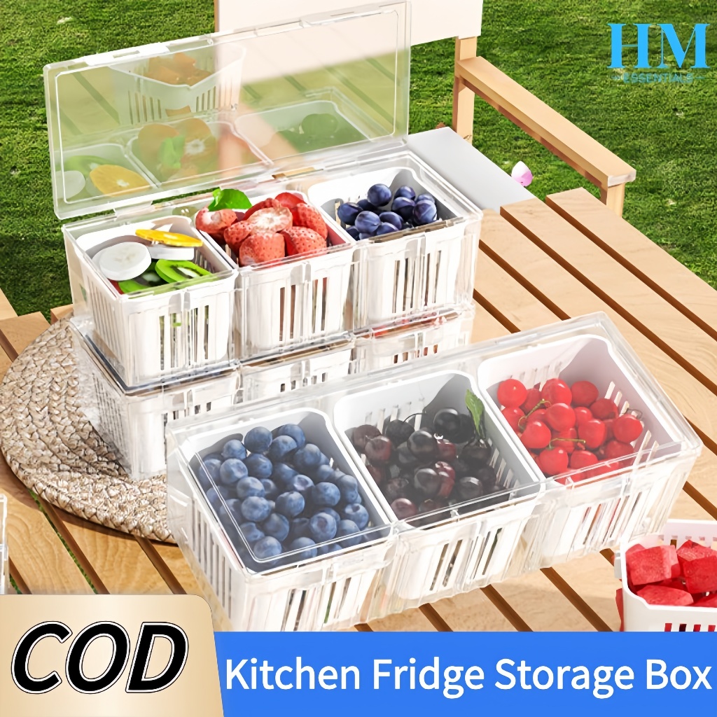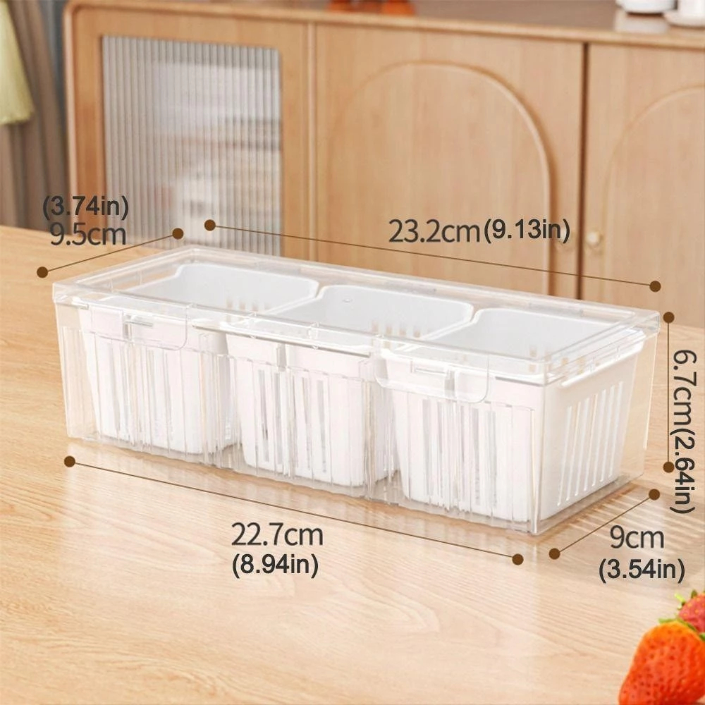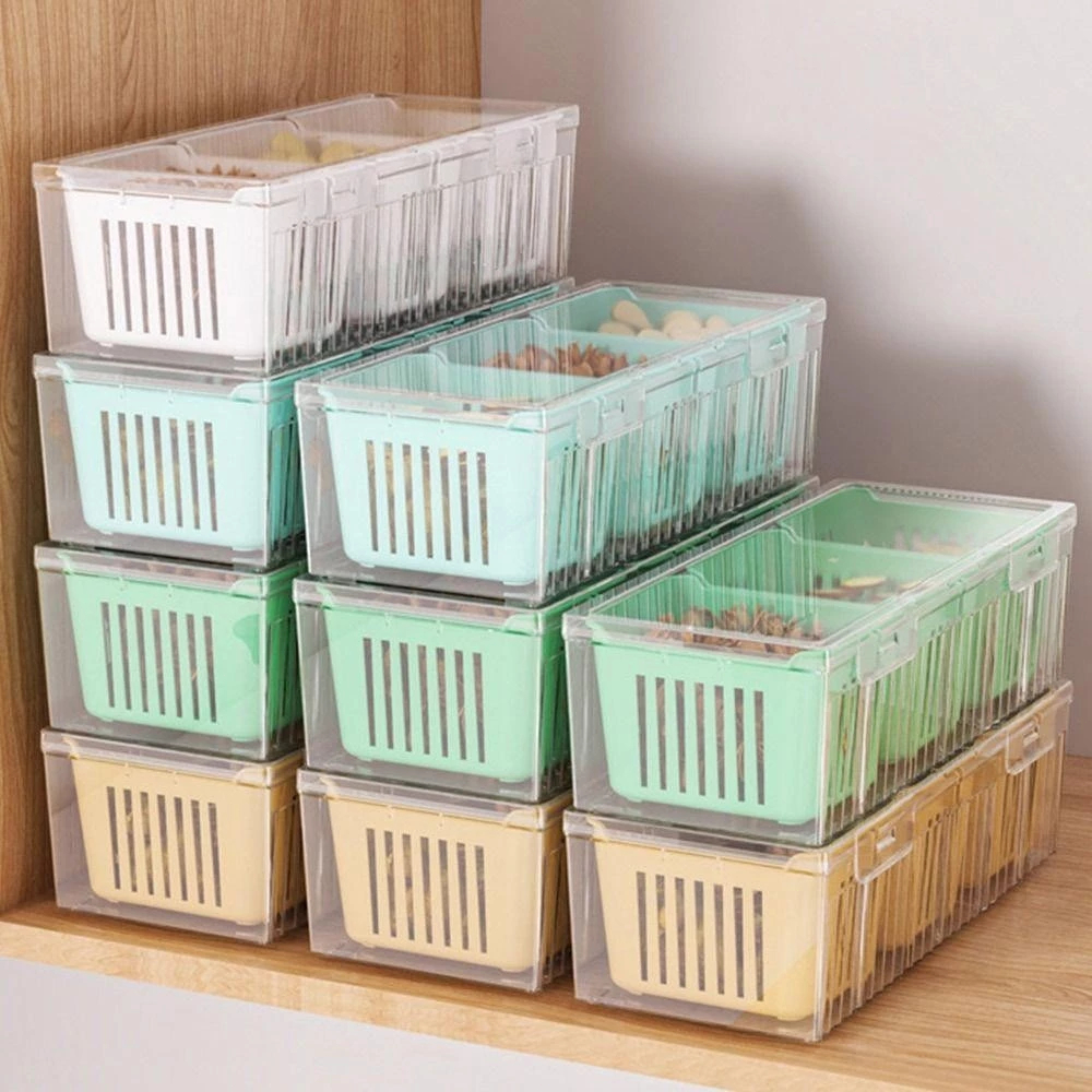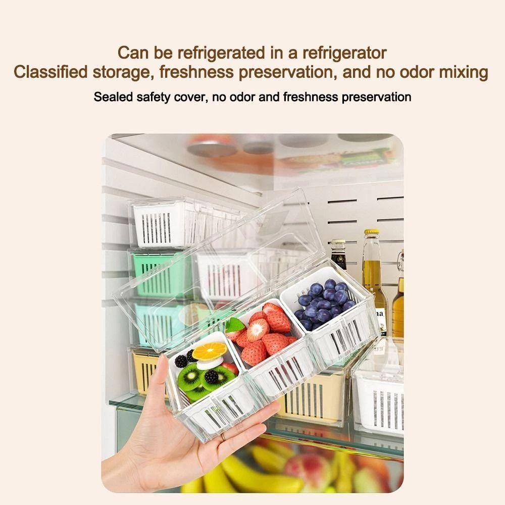 Fridge Storage Box With Lid Large Capacity Box Durable 3 Grid Kitchen Drain Seal Box Onion Garlic