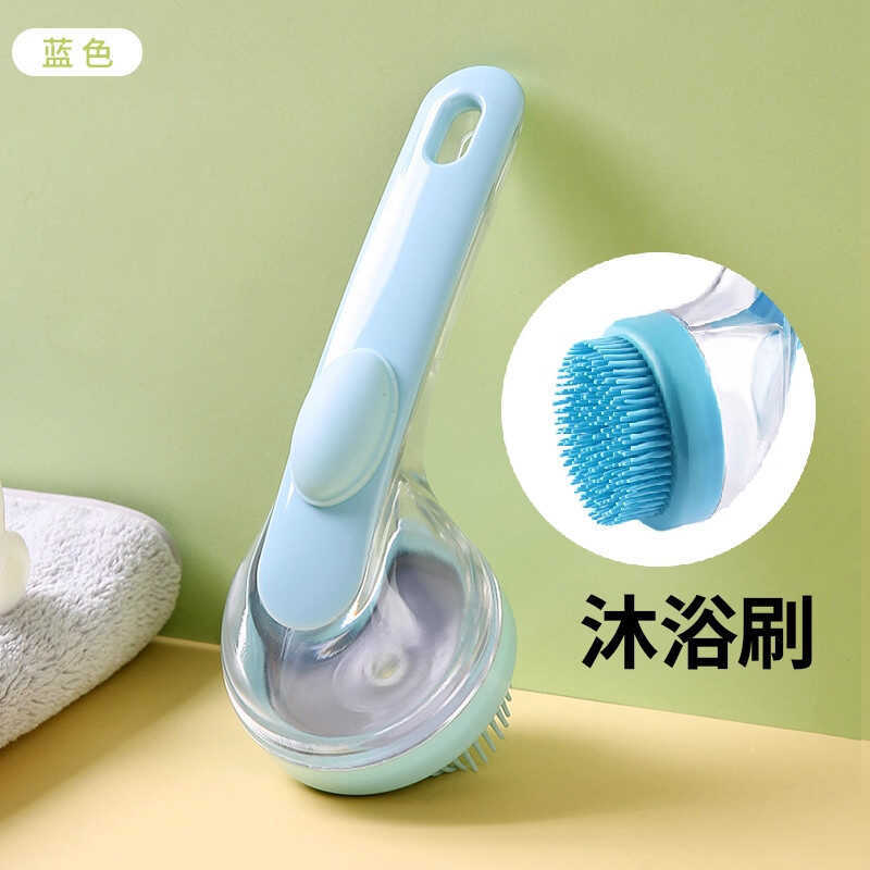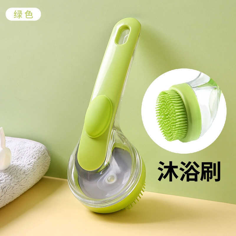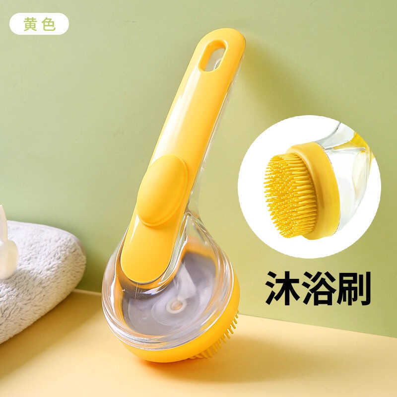 Household Pressing Liquid Shampoo Handy Tool Head Massage Brush Rubbing Bath Bath Brush with Liquid Long Handle Silicone Bath Brush