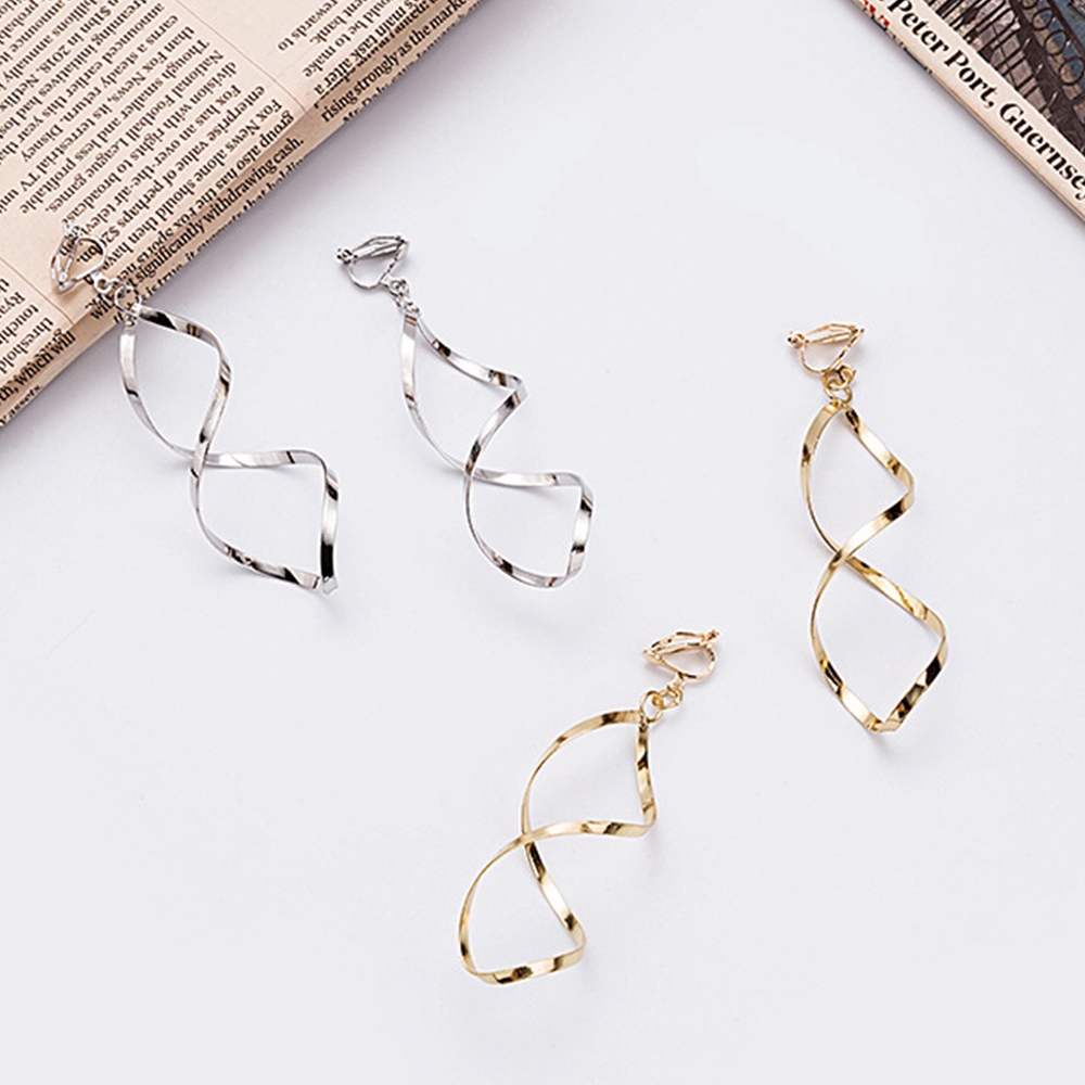 Non Pierced Gold Silver Color Geometric Clip Earrings Simple Twisted Ear Cuff No Ear Hole Jewelry Women Girls