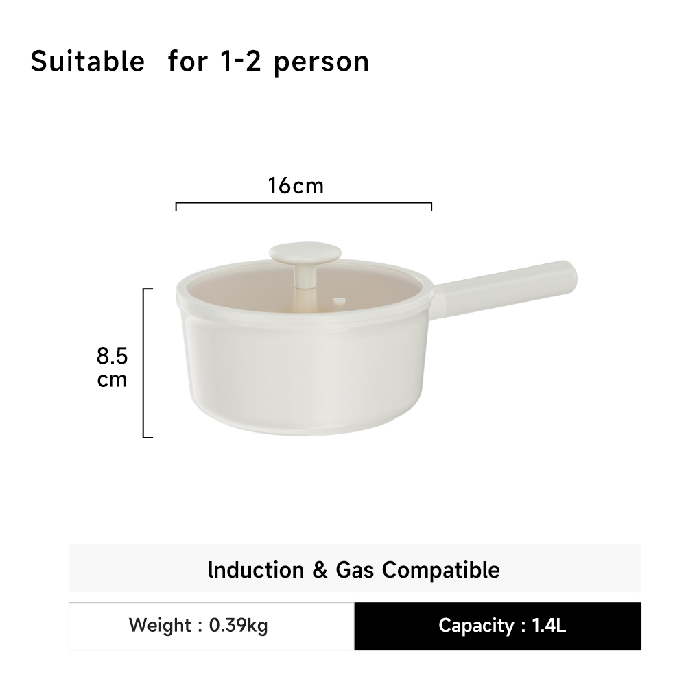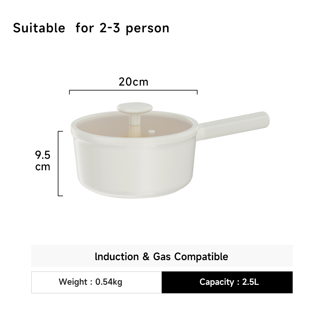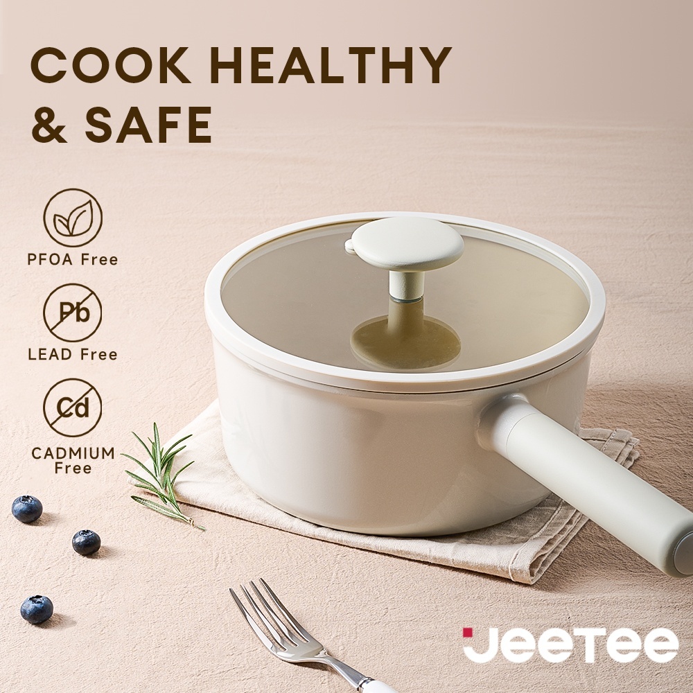 JEETEE【Handle Removable】Non Stick Ceramic Milk Pot 16CM/20CM Saucepan with Lid Suitable for all stoves
