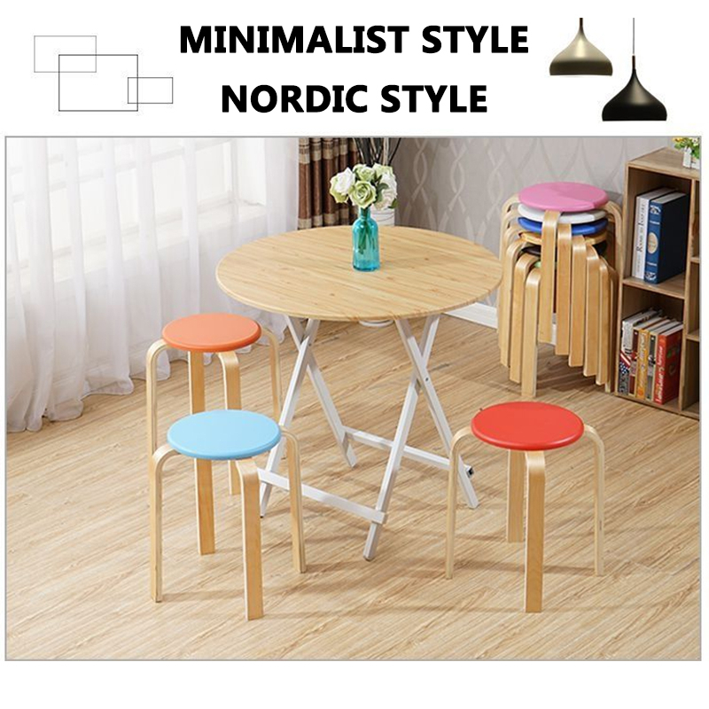 Nordic Dining Stool Round Stool Chair Solid Wood Stool 100KG Load Bearing