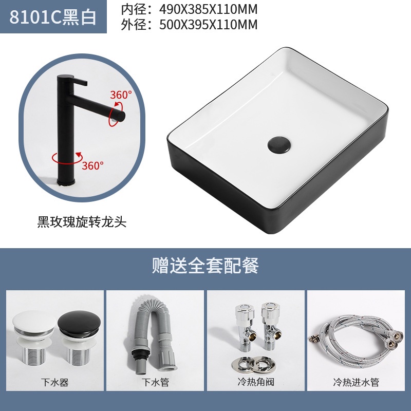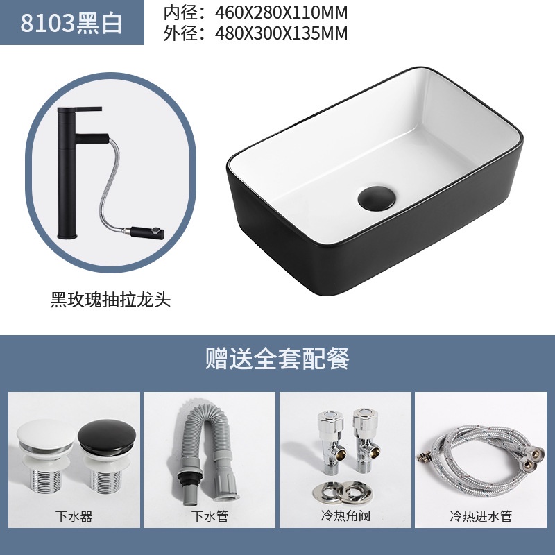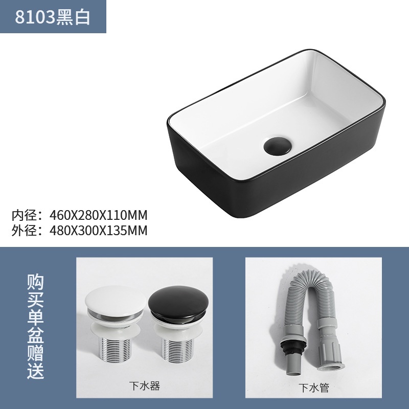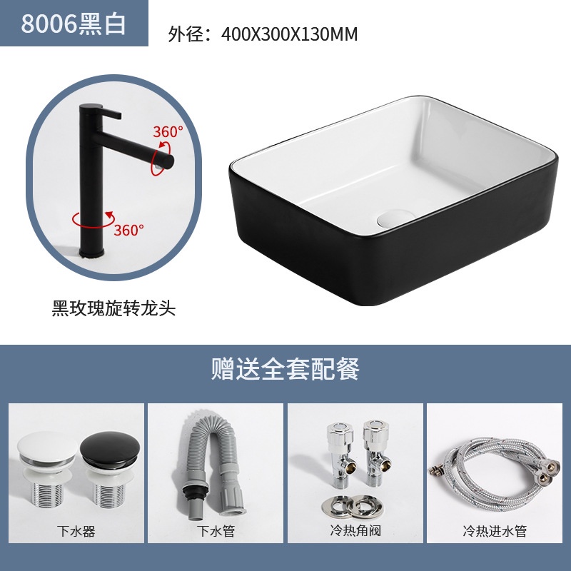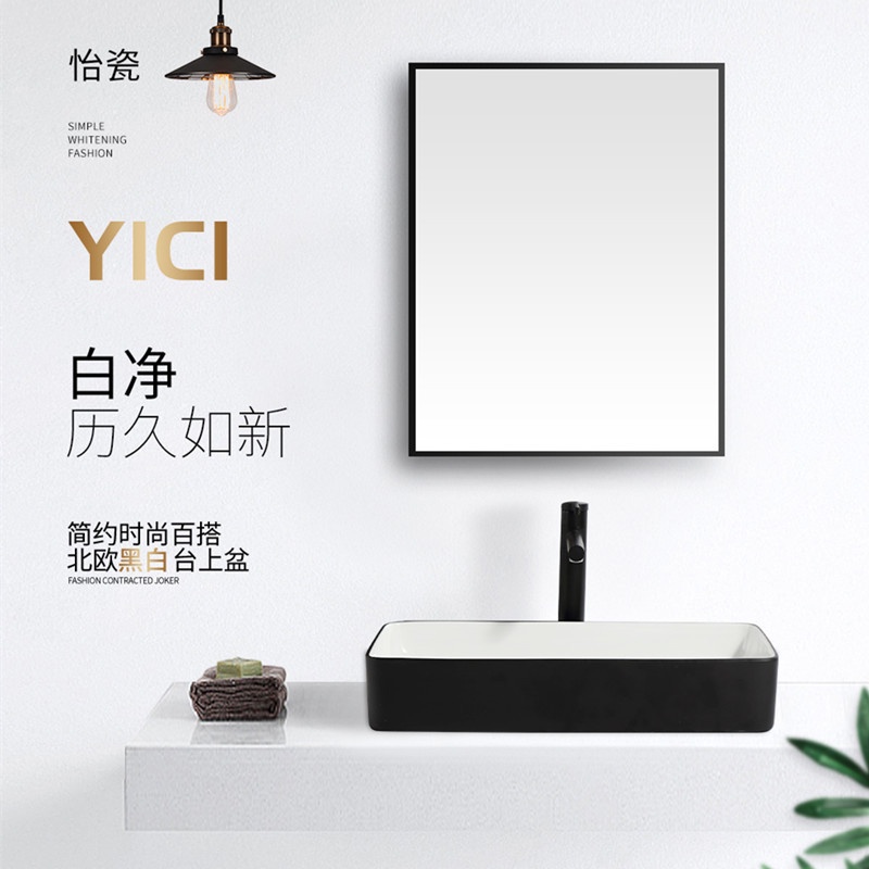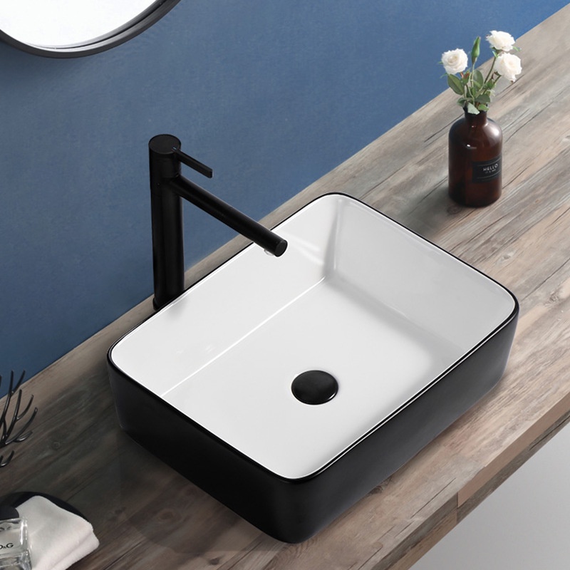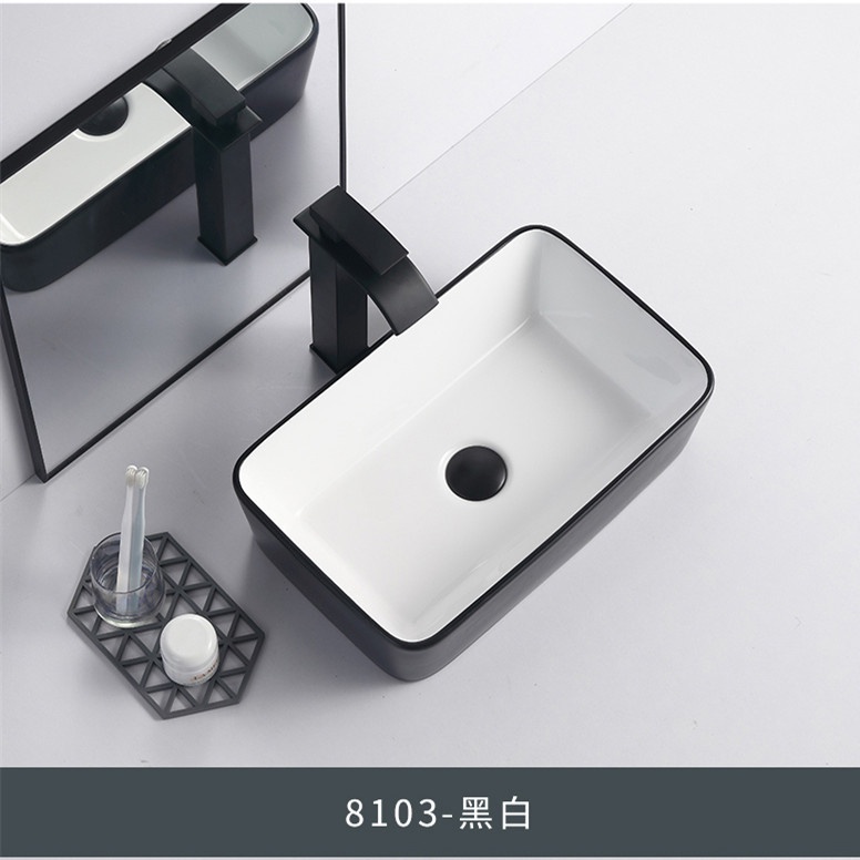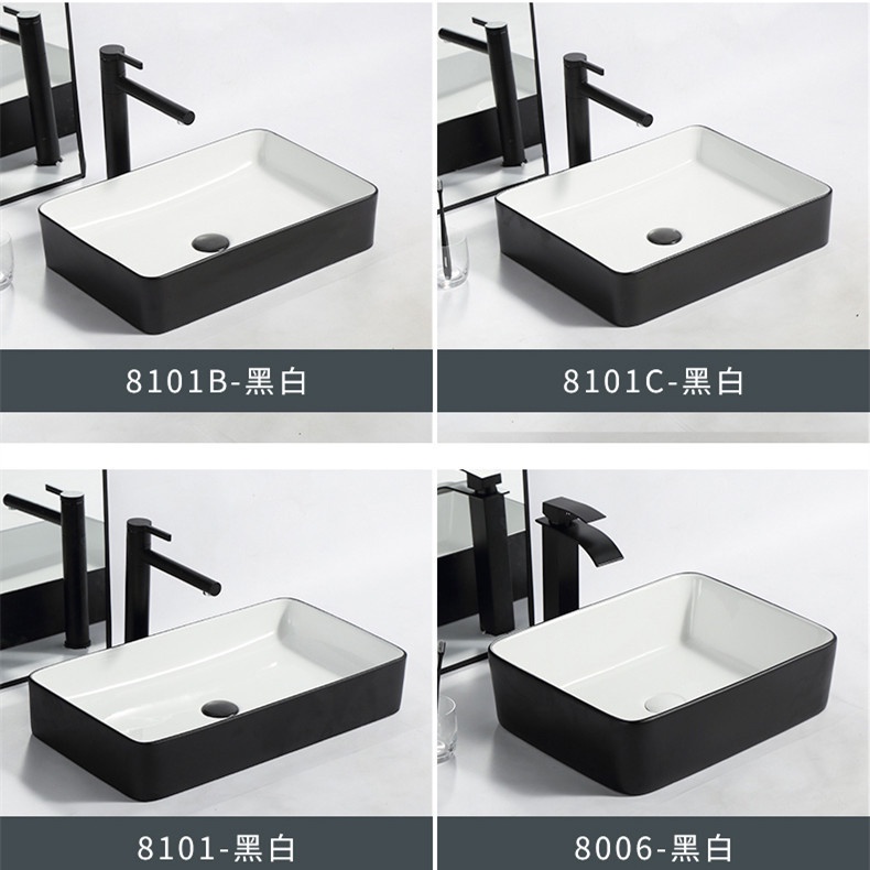 Nordic Minimalist Table Basin Wash Basin Square Black and White Wash Basin Home Bathroom Ceramic