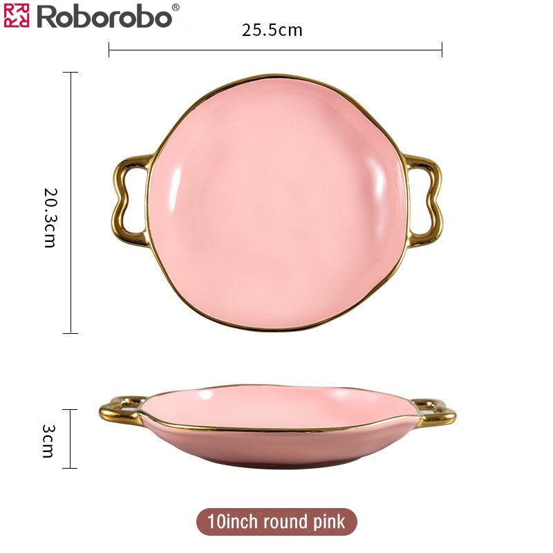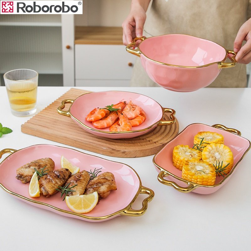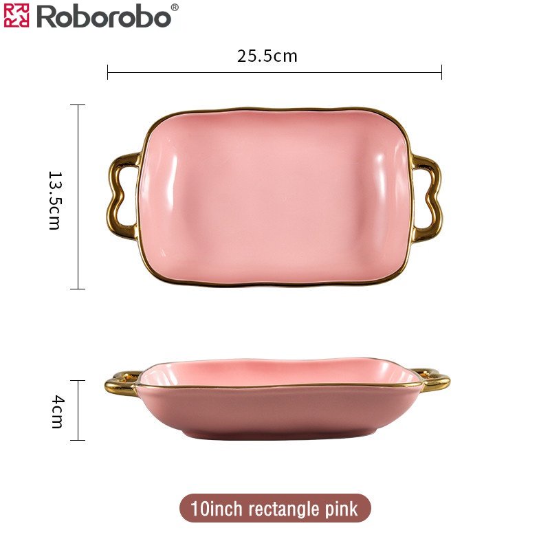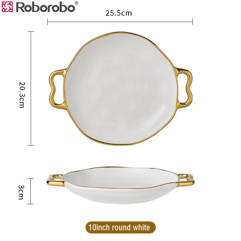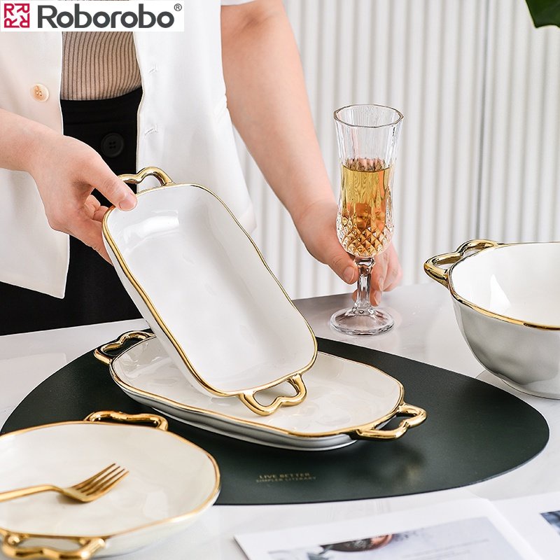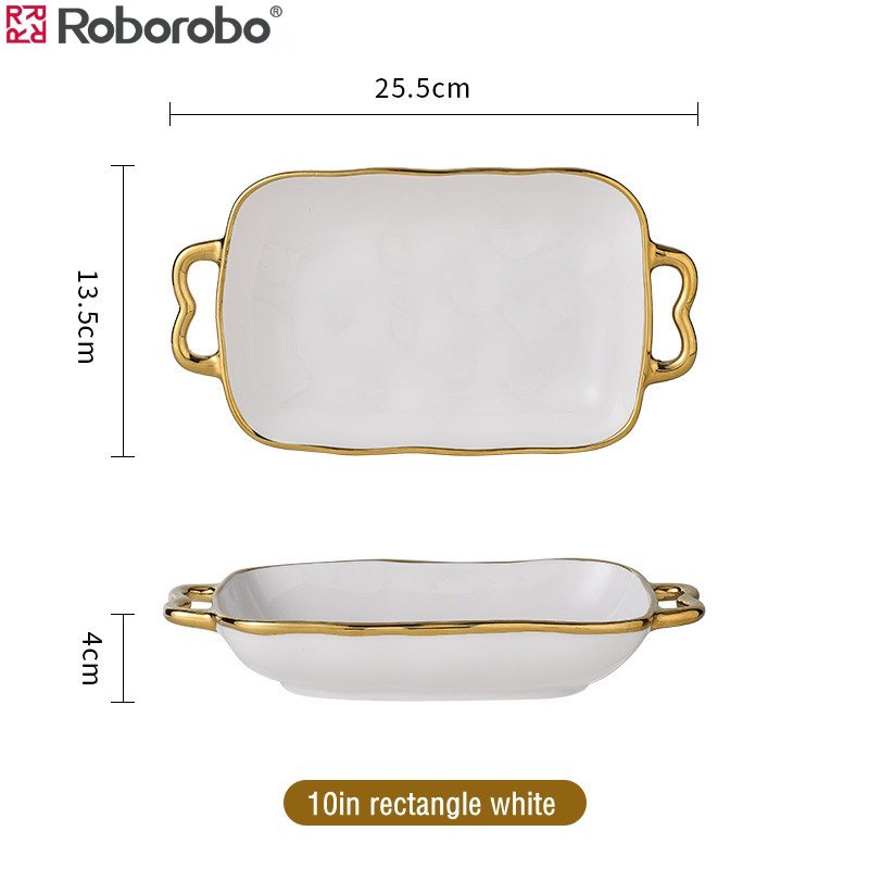 Nordic Rectangle White Ceramic Tableware 10inch Baking Soup Bowl Dish Dinner Plate Dual Handle Round