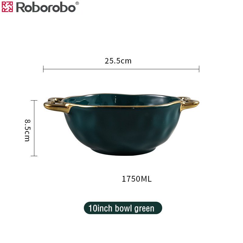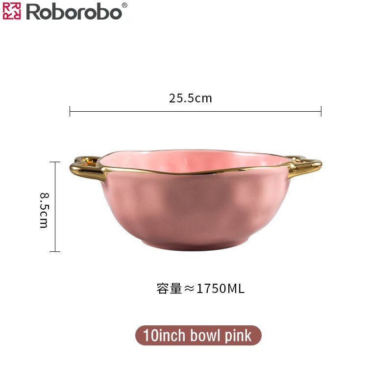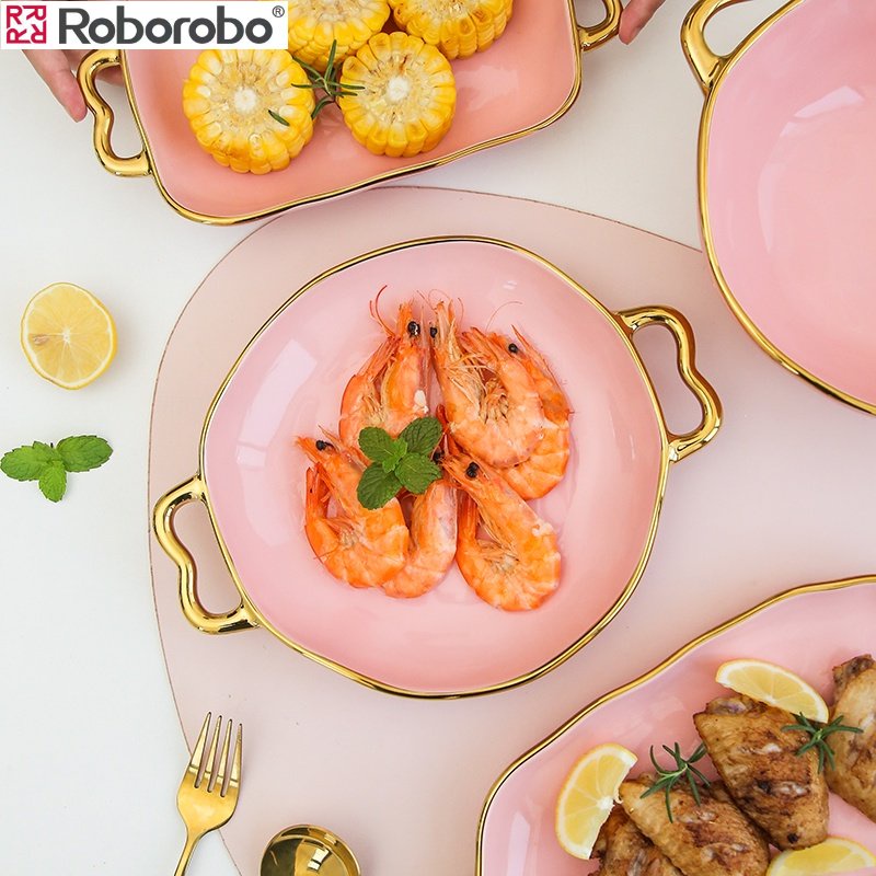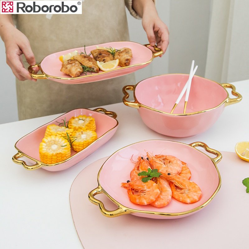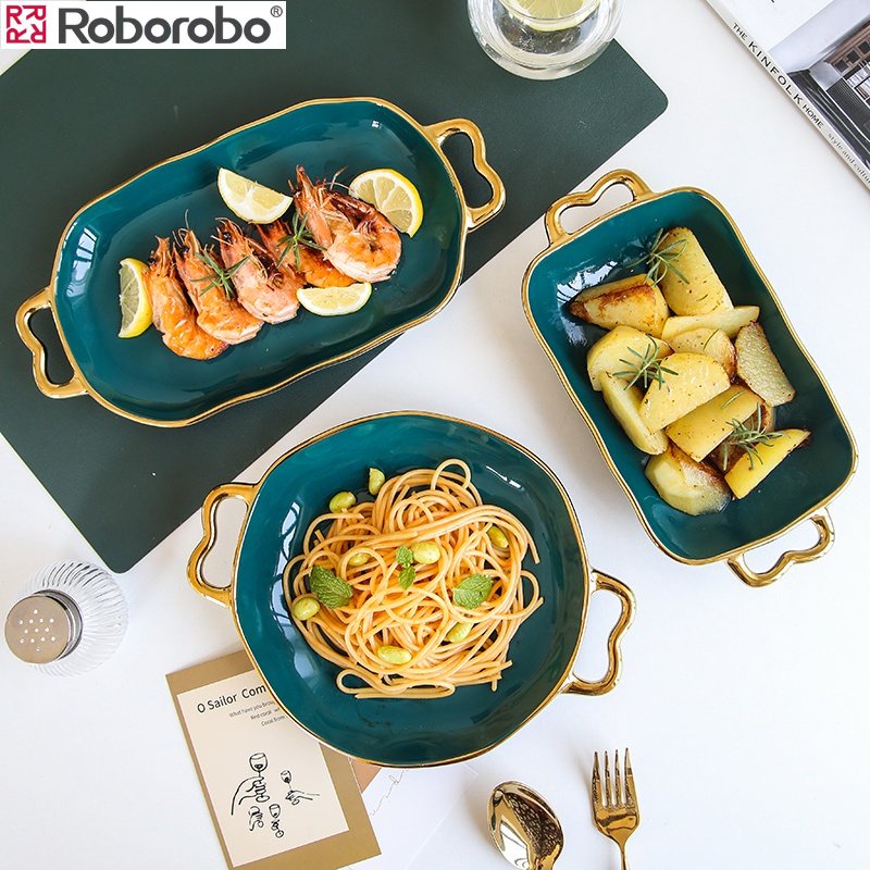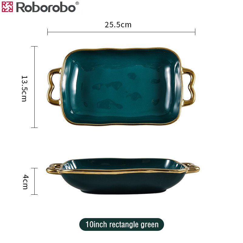 Nordic Rectangle White Ceramic Tableware 10inch Baking Soup Bowl Dish Dinner Plate Dual Handle Round