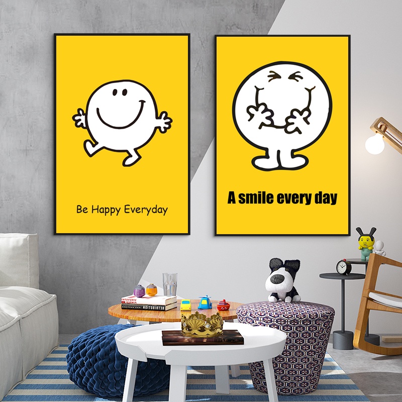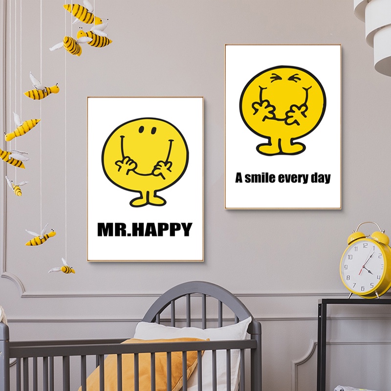 Nordic Simple Cute Smiley Poster Smile Orange Smiley Korean Wall Art Canvas Painting Posters For Living Room Home Decor