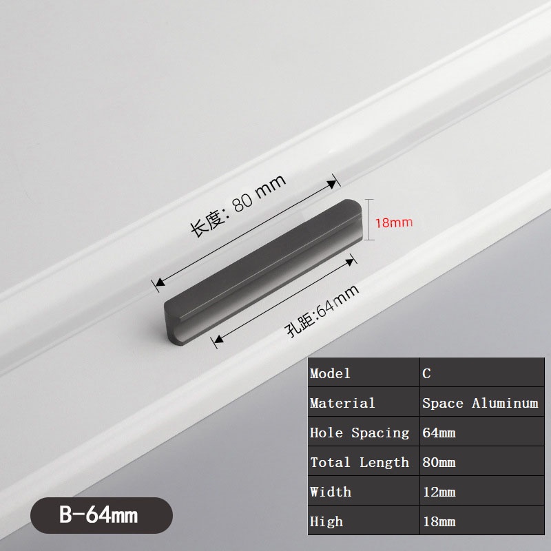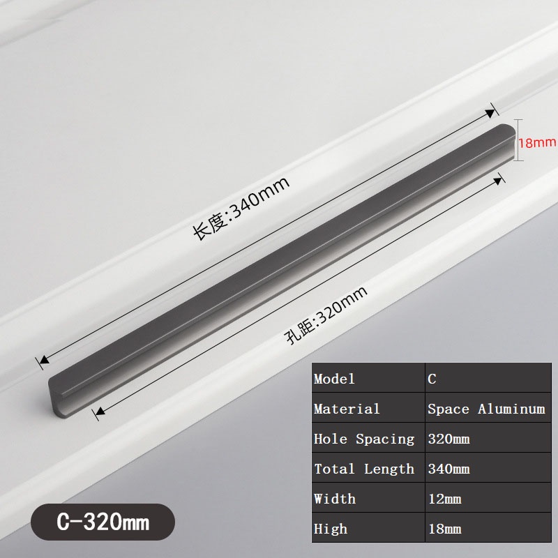 Nordic Style Gray Handle Cabinet Wardrobe Cabinet Door Drawer Handle Furniture Door Handle