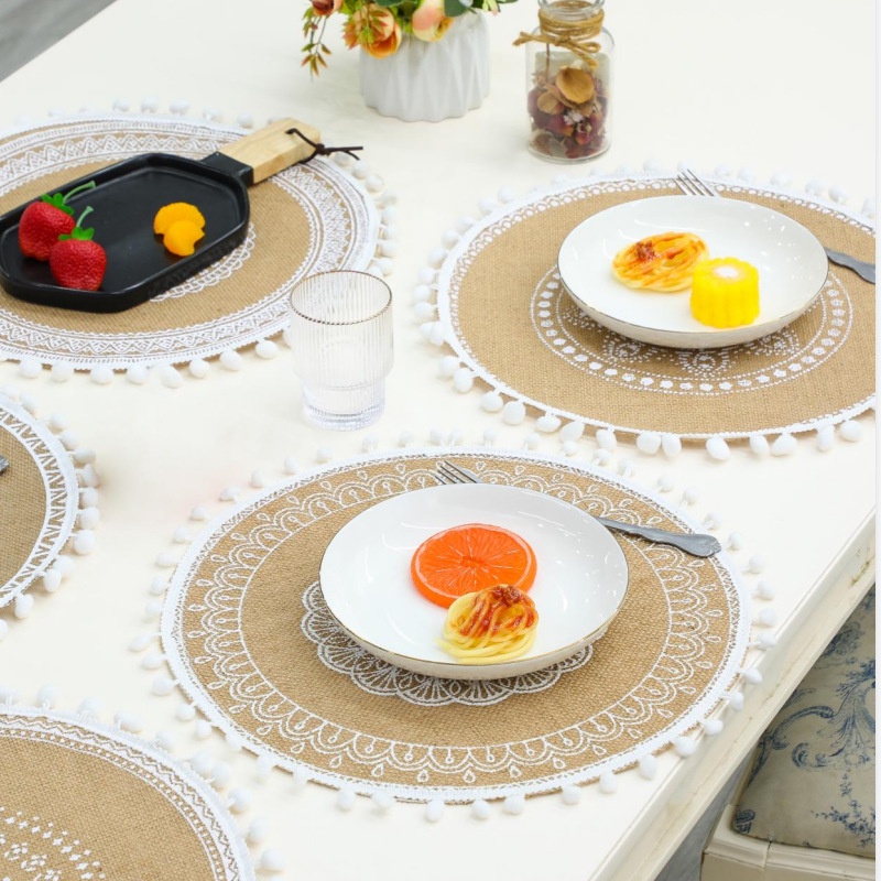 Nordic Table Mat Retro Woven Placemat Tassel Heat Insulation Coasters Decoration mat Coffee Cup Mats