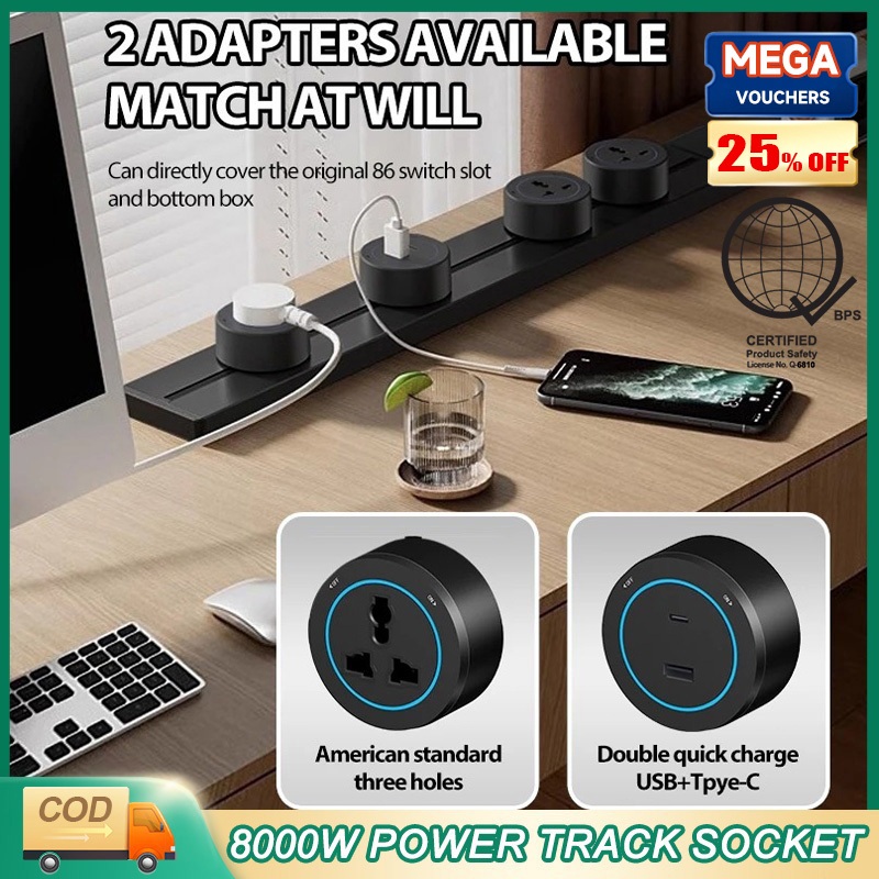 Norma Track Socket Power Wall Mounted Socket Outlet Removable Socket With Usb+Typec For Home