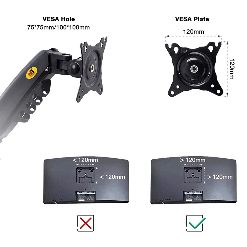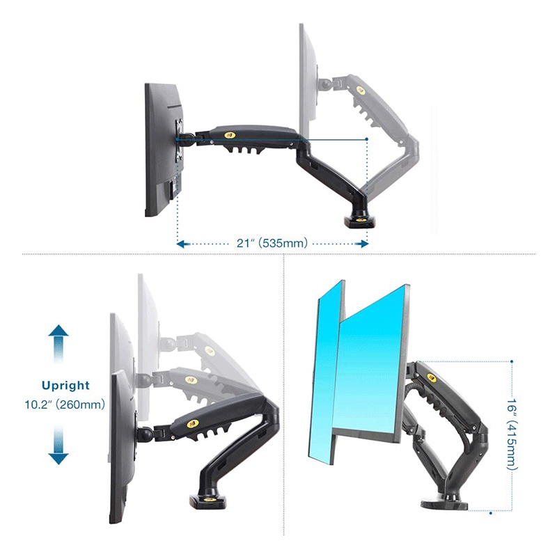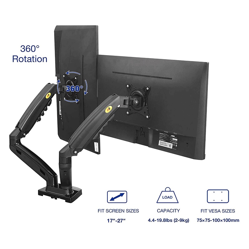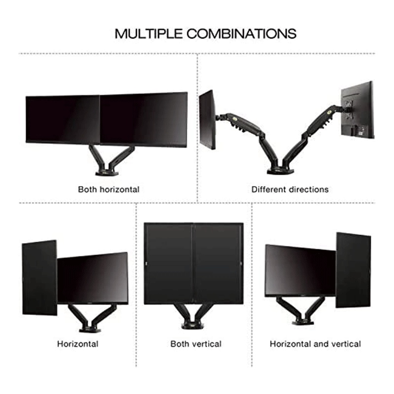 North Bayou F160 Gas-Struf Flexi Mount Dual Screen Desktop 17-27 Inch Monitor Arm Black